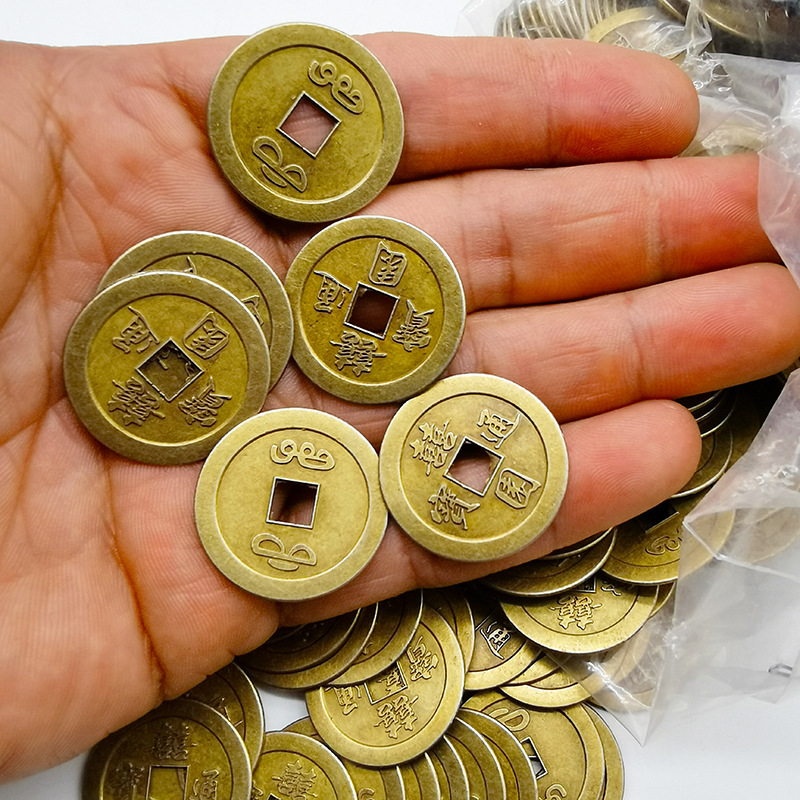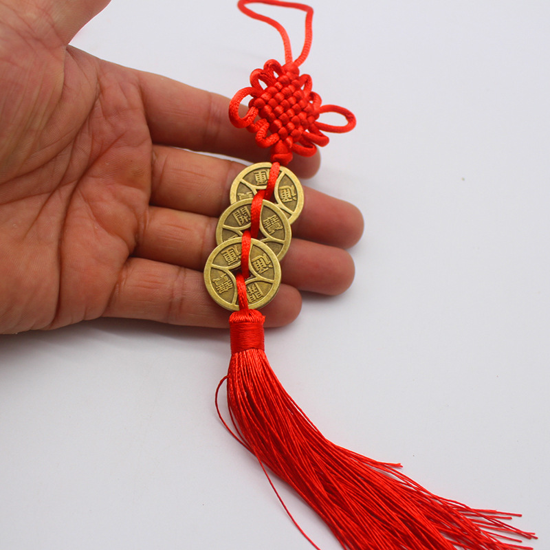 Alloy copper coins for attracting wealth and treasures, Chinese knots, Five Emperors string, ancient coins for bringing good fortune and prosperity, Tongbao, auspiciousness and happiness, Double joy Tongbao