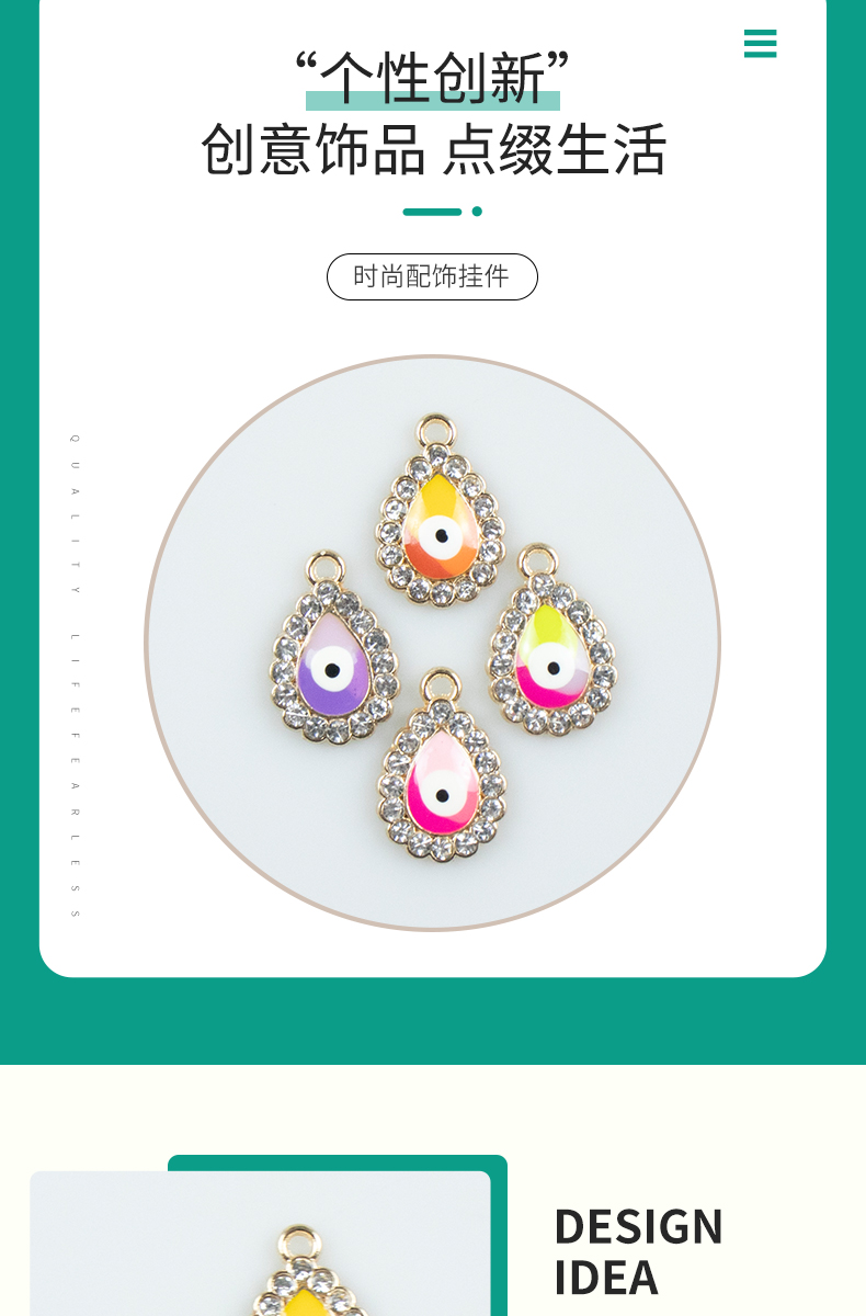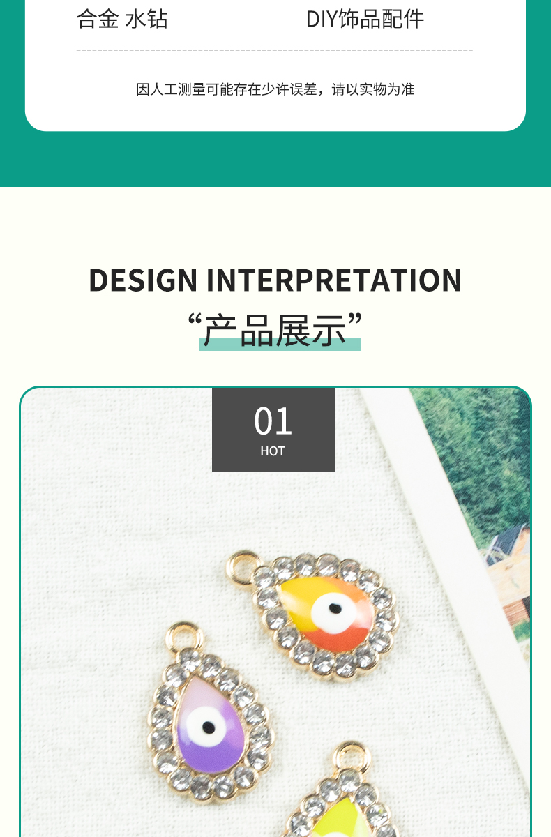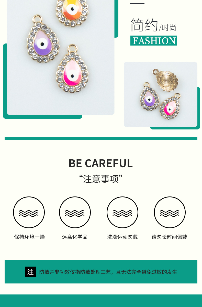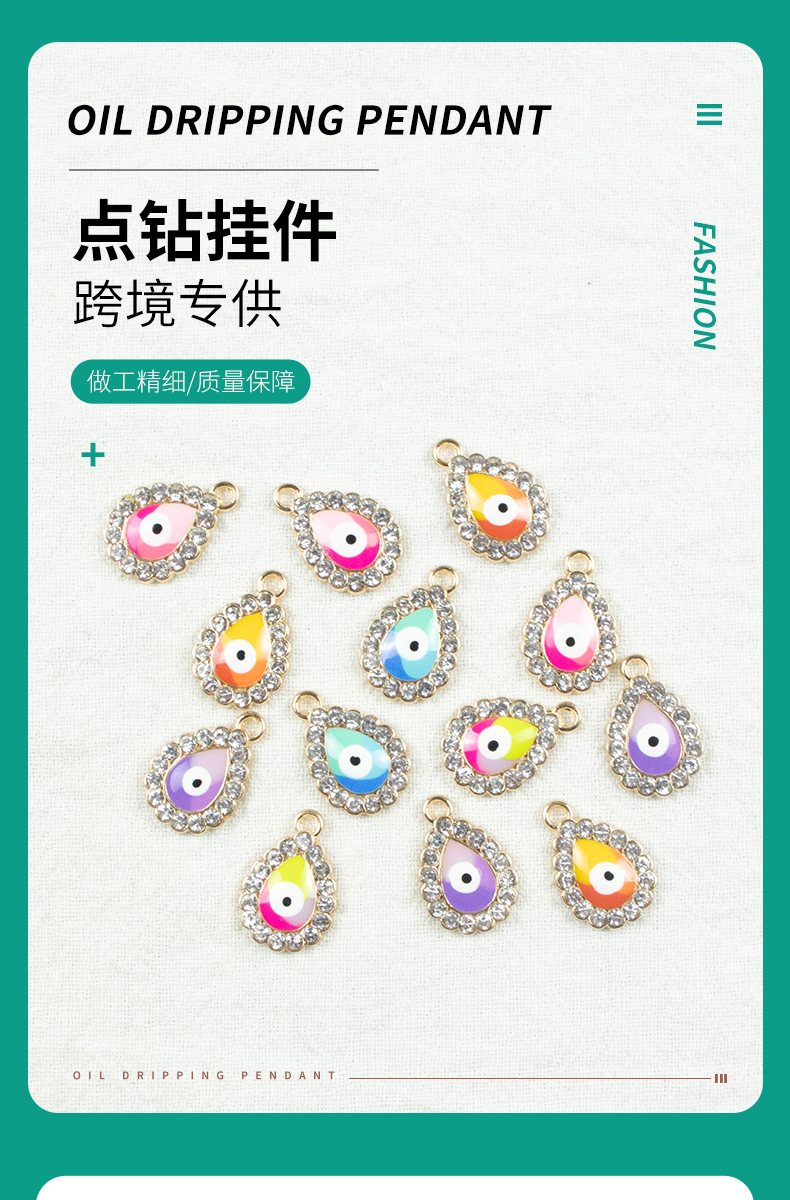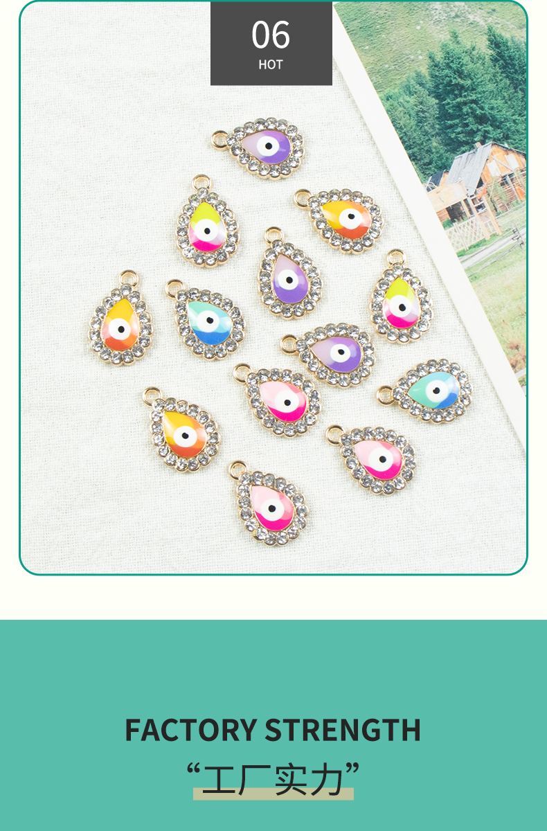 Alloy dot brick oil and water droplet silver-edged single-hanging Devil's Eye necklace, earring accessories, diy jewelry accessories, jewelry accessories, alloy accessories