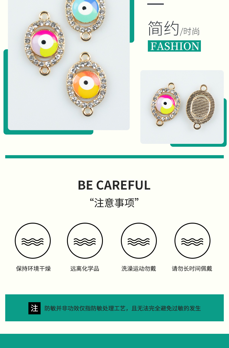 Alloy dot brick oil drip double-hanging Devil's Eye necklace, earring accessories diy jewelry accessories Jewelry accessories Alloy accessories