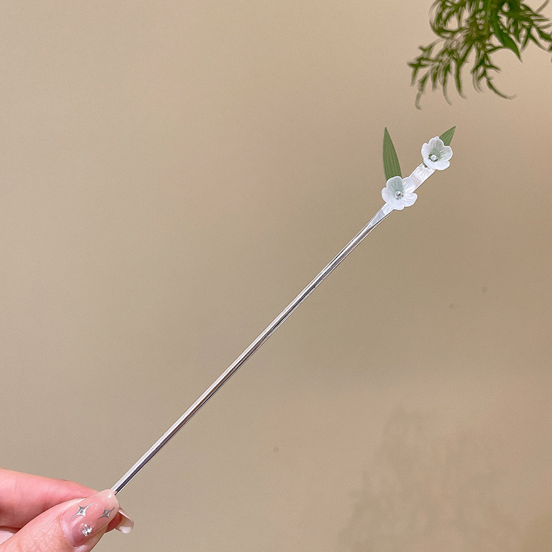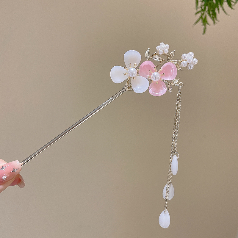 10# White Jade Flower Tassel Hairpin (Bagged)