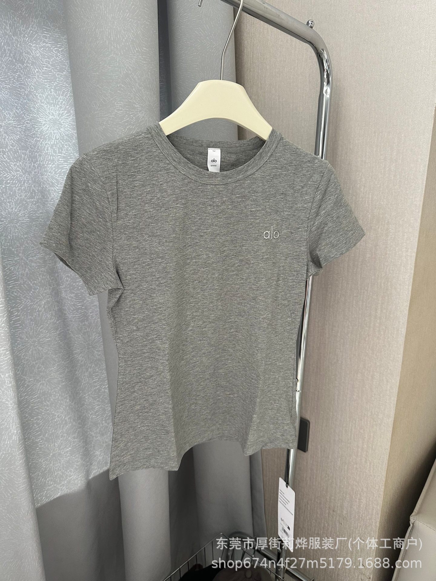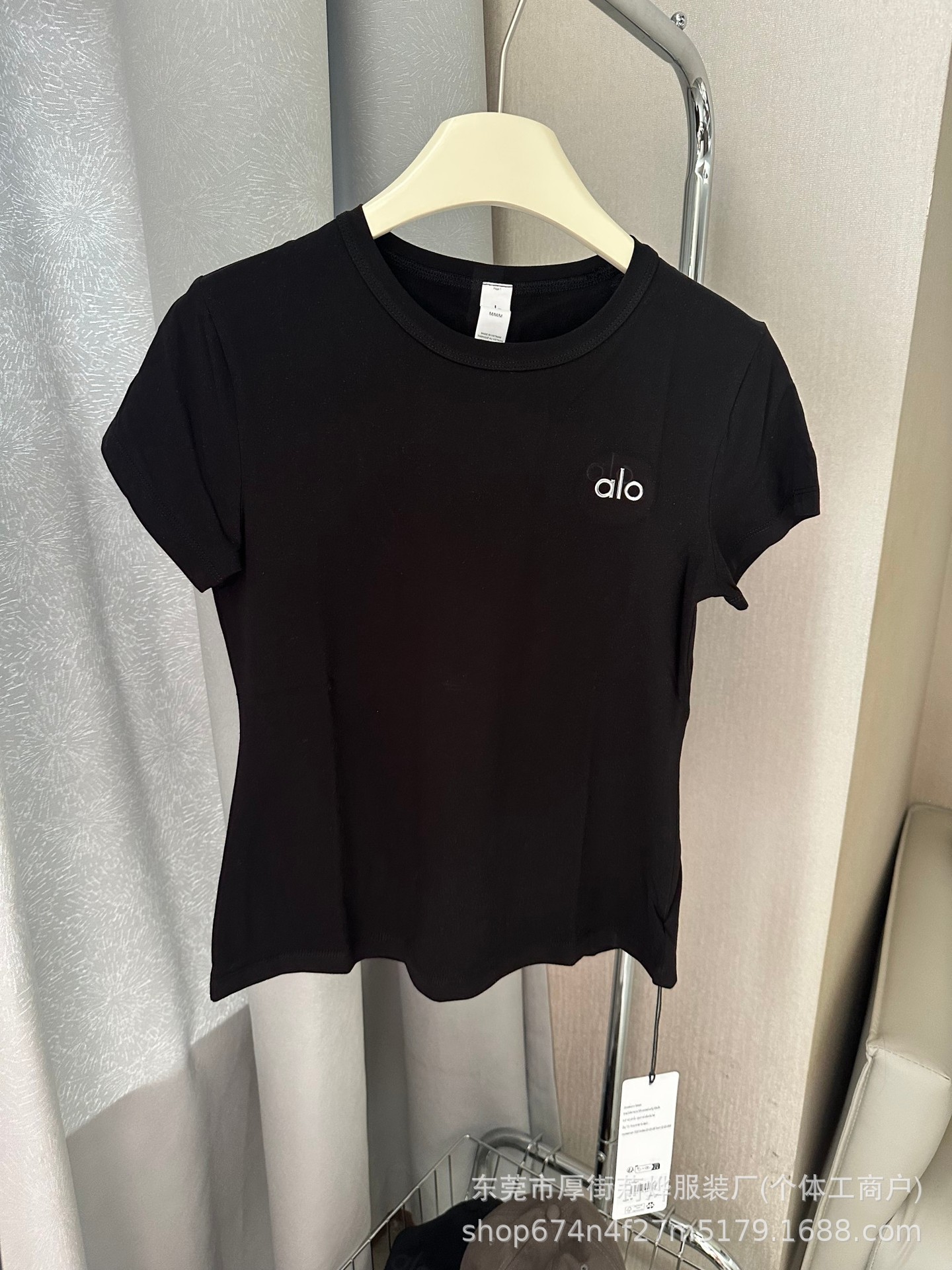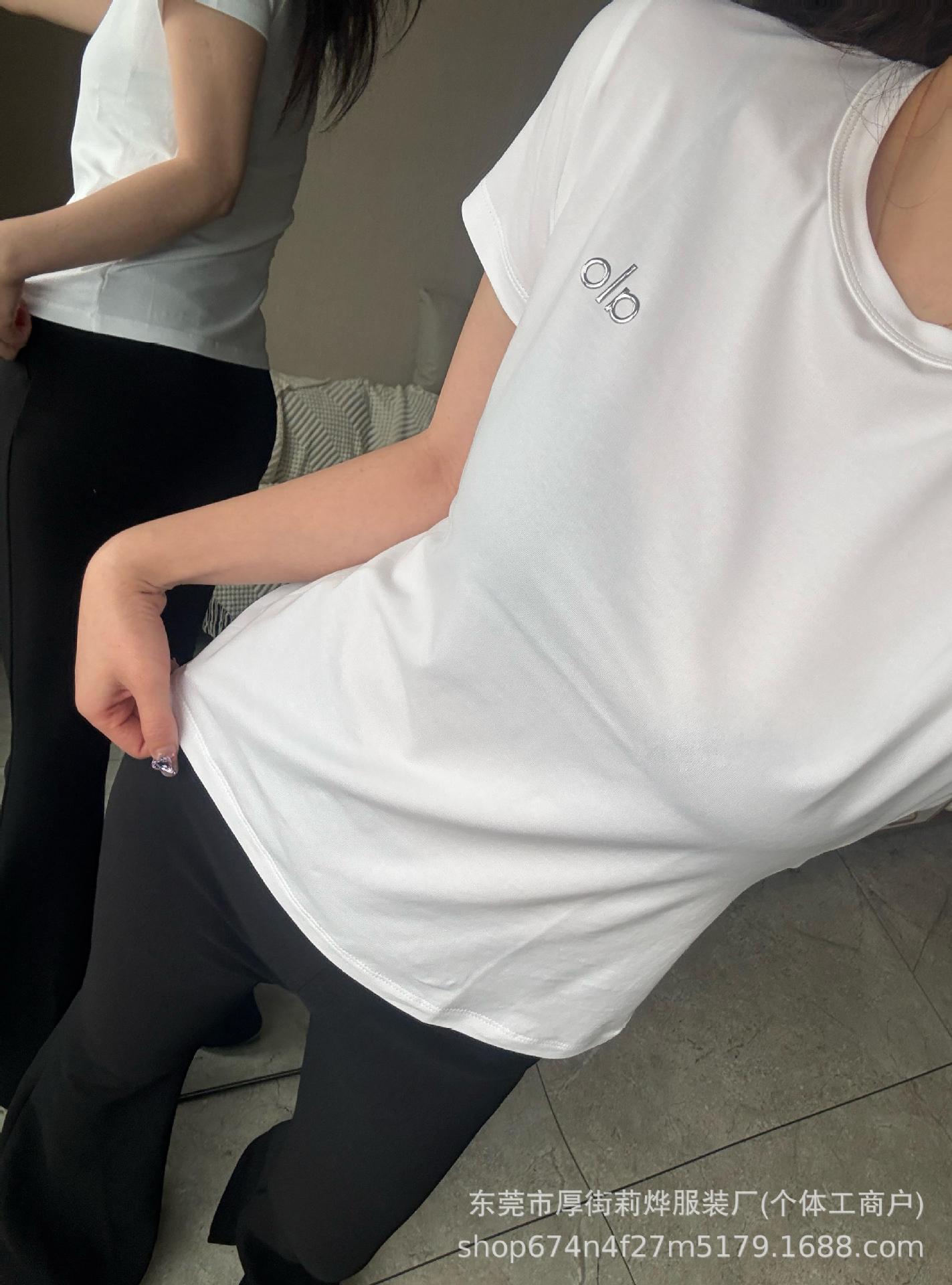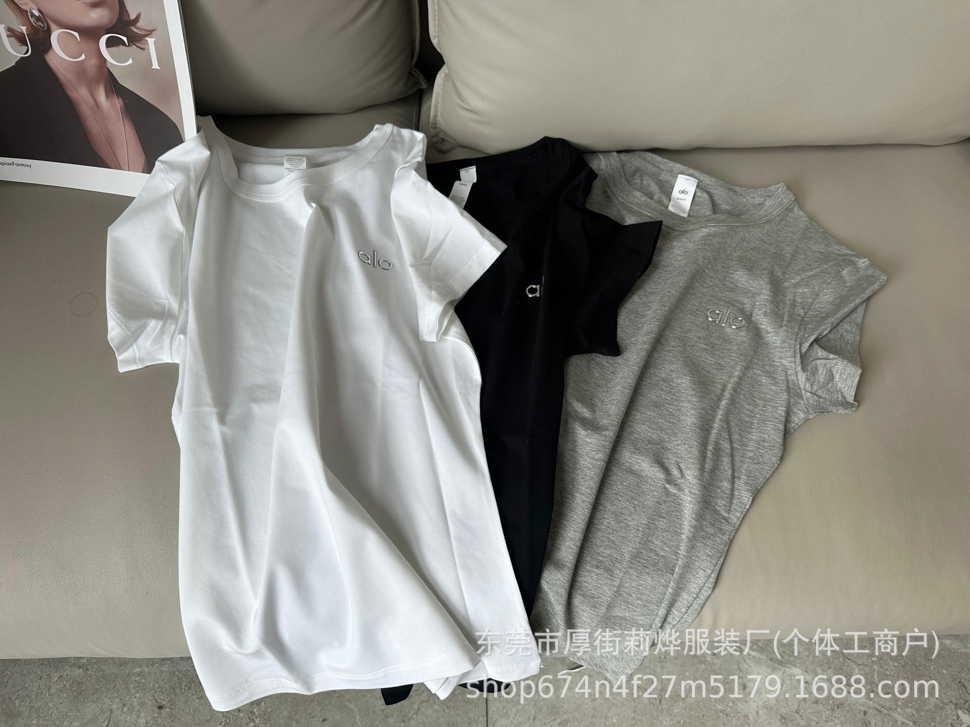 alo short-sleeved T-shirt 2025 New style, trendy letter embossed print, women's special, sporty and casual, versatile round neck short-sleeved