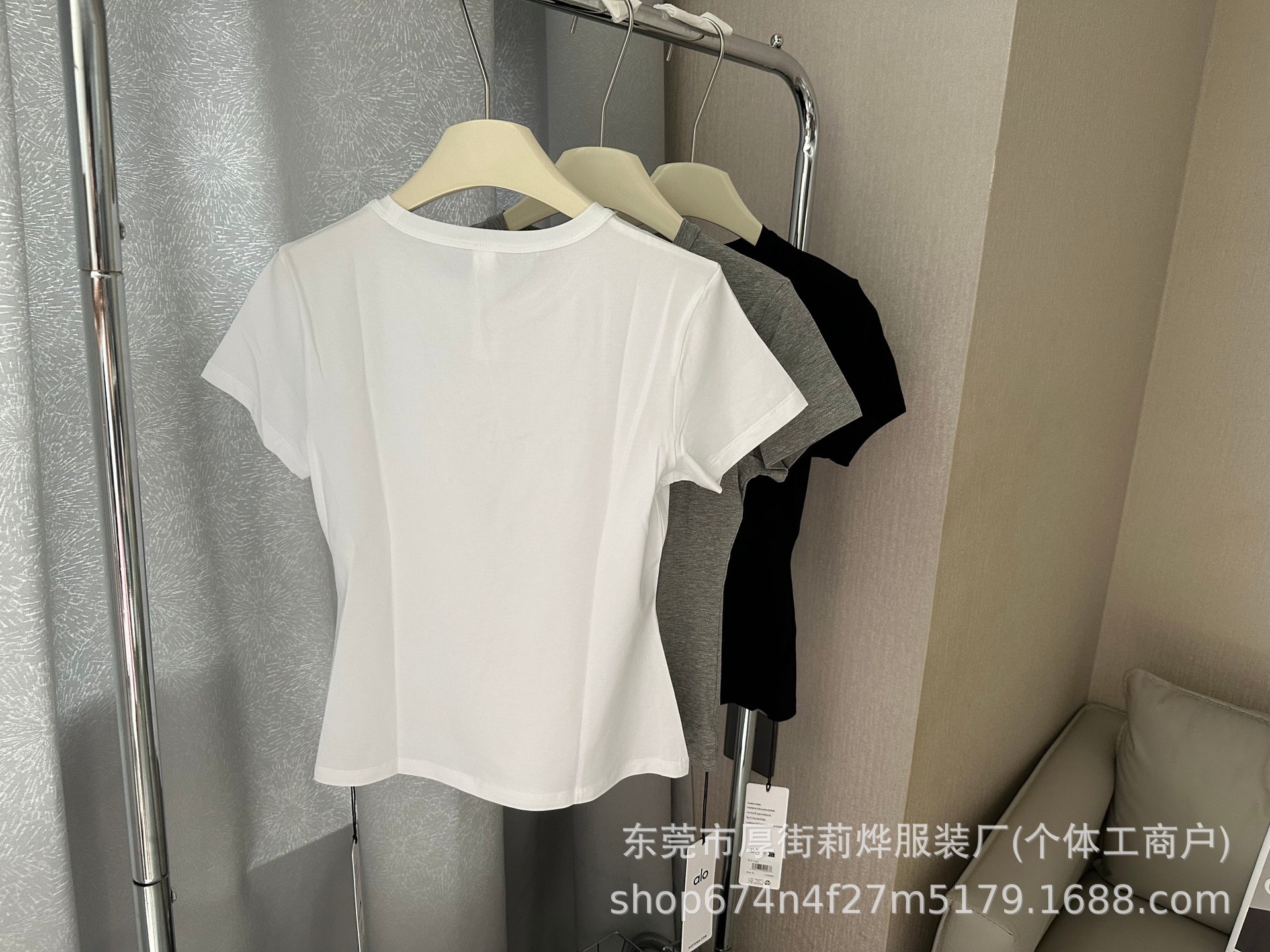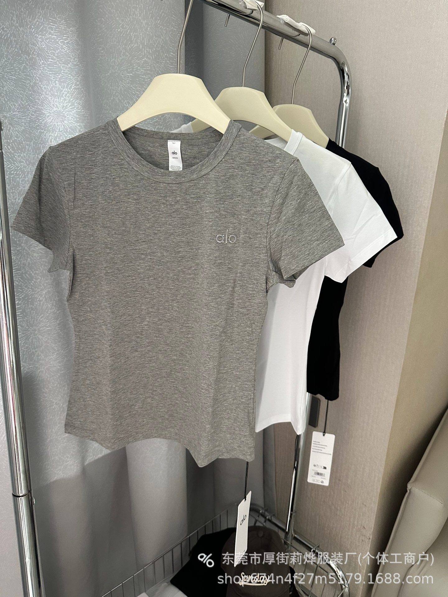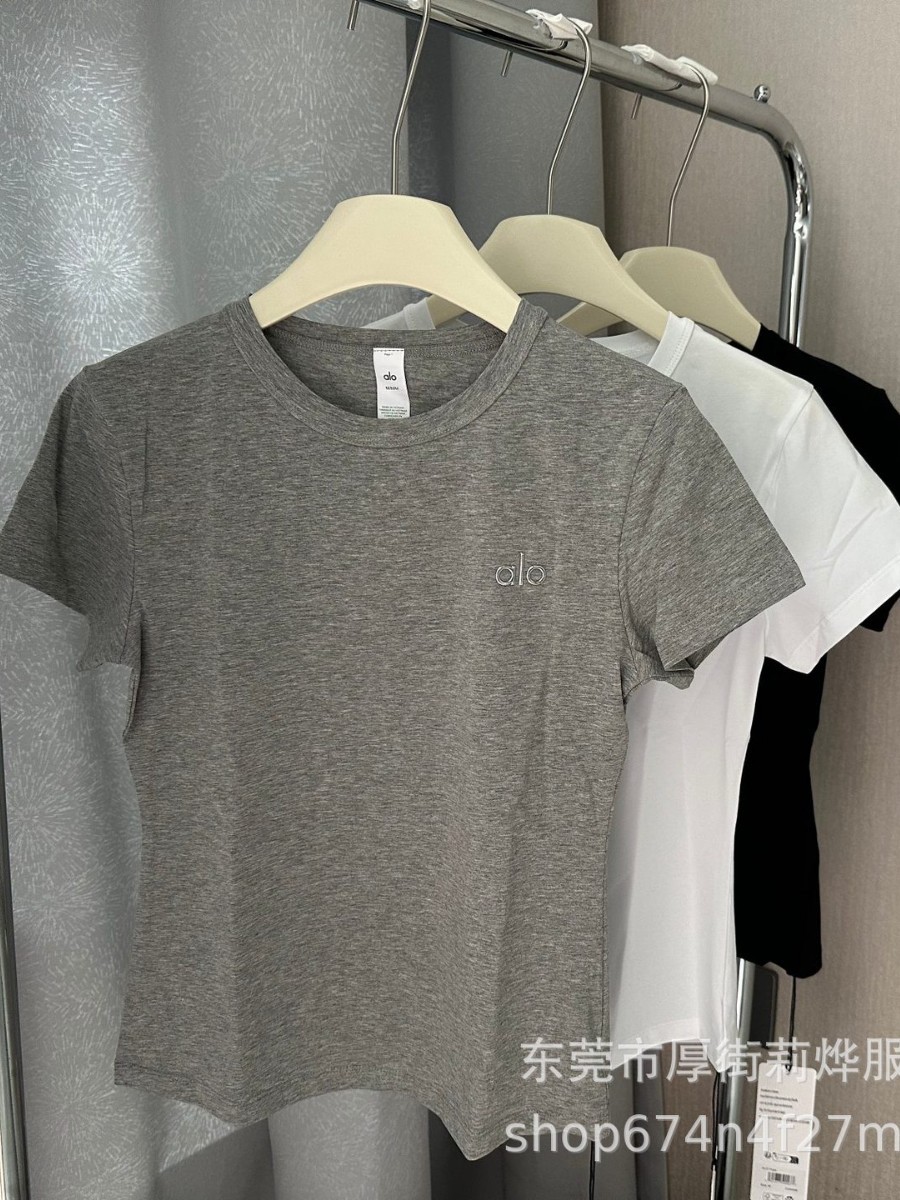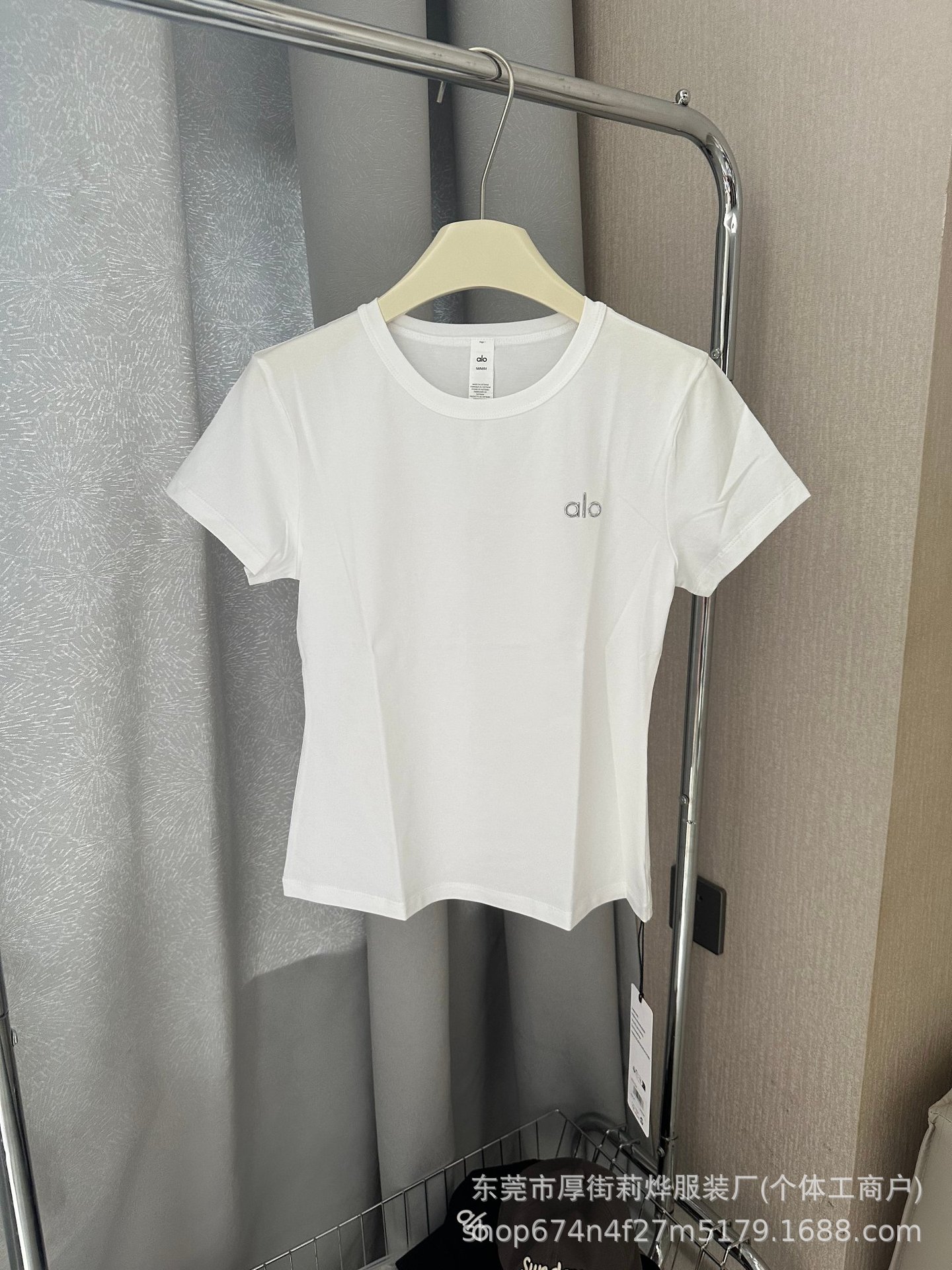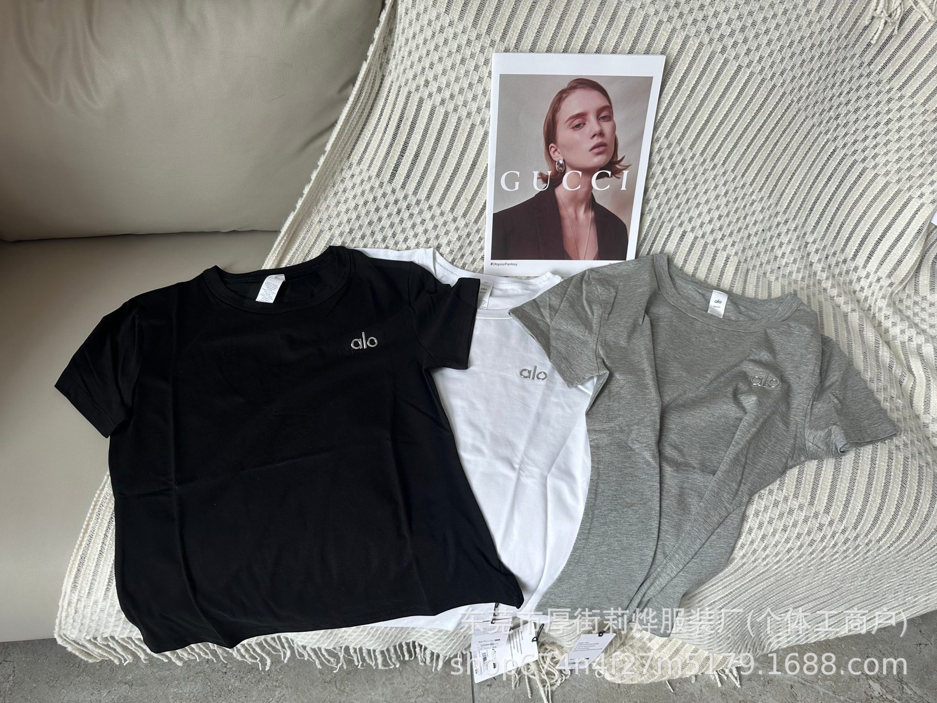 alo short-sleeved T-shirt 2025 New style, trendy letter embossed print, women's special, sporty and casual, versatile round neck short-sleeved