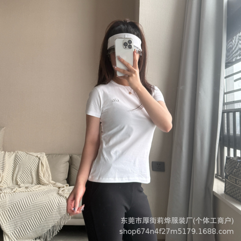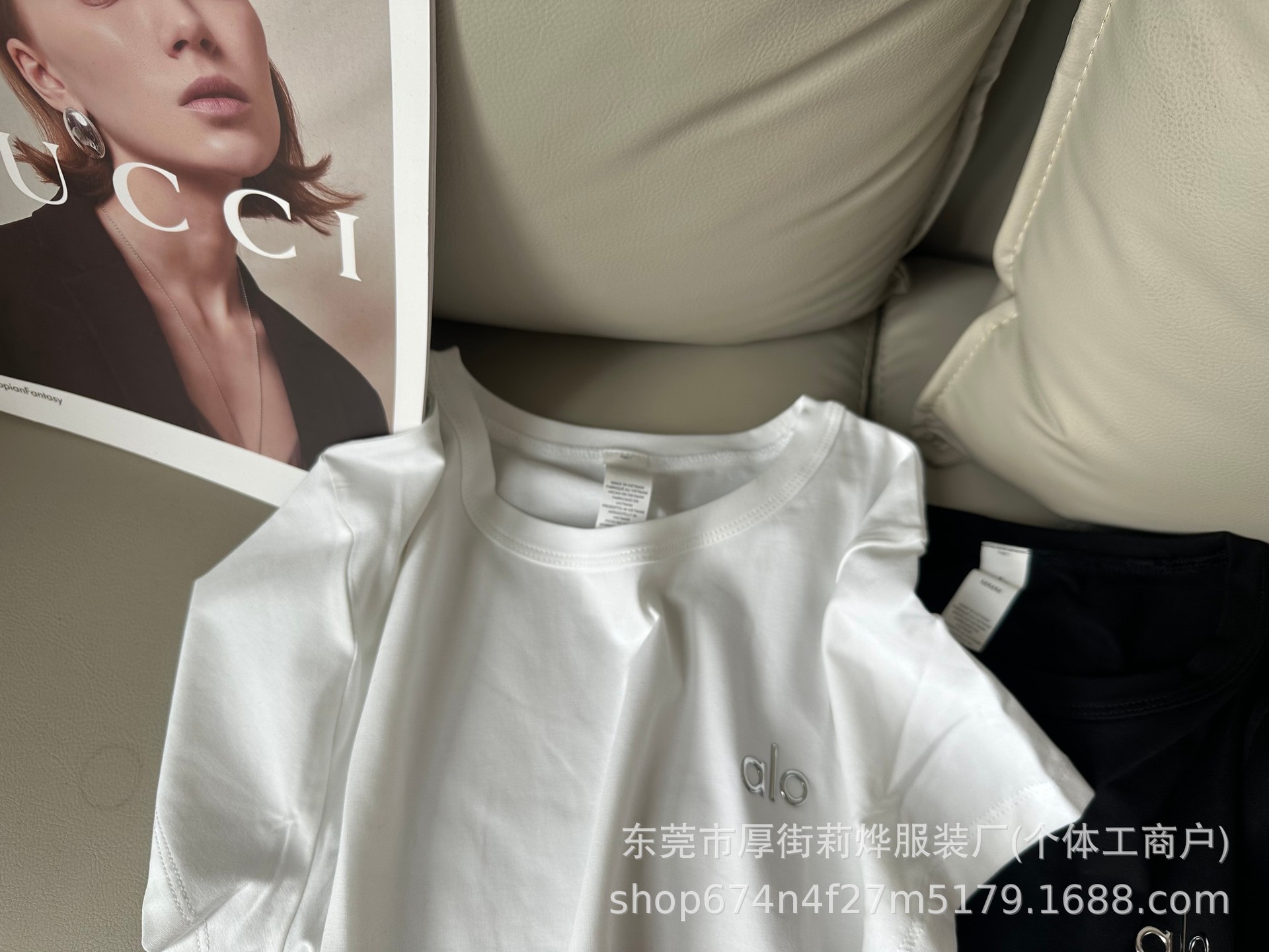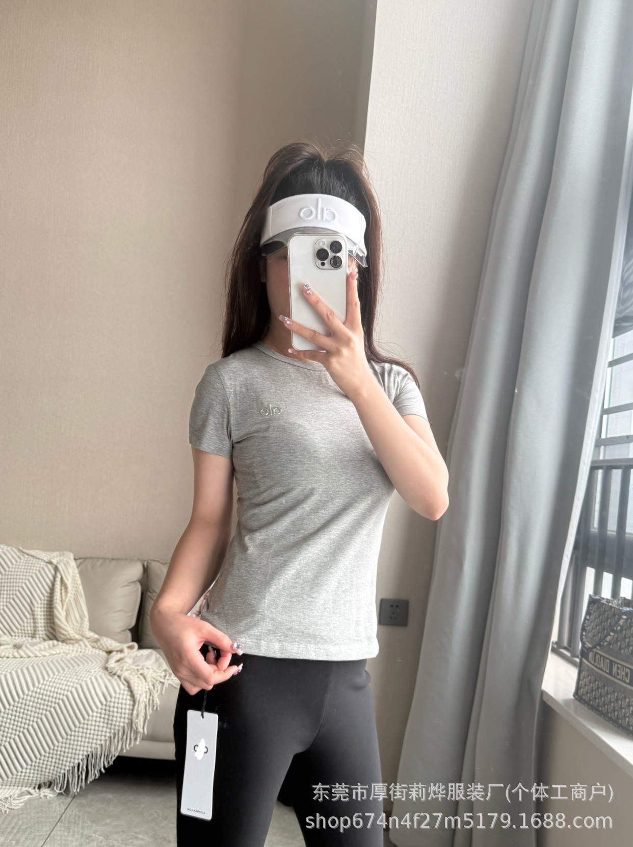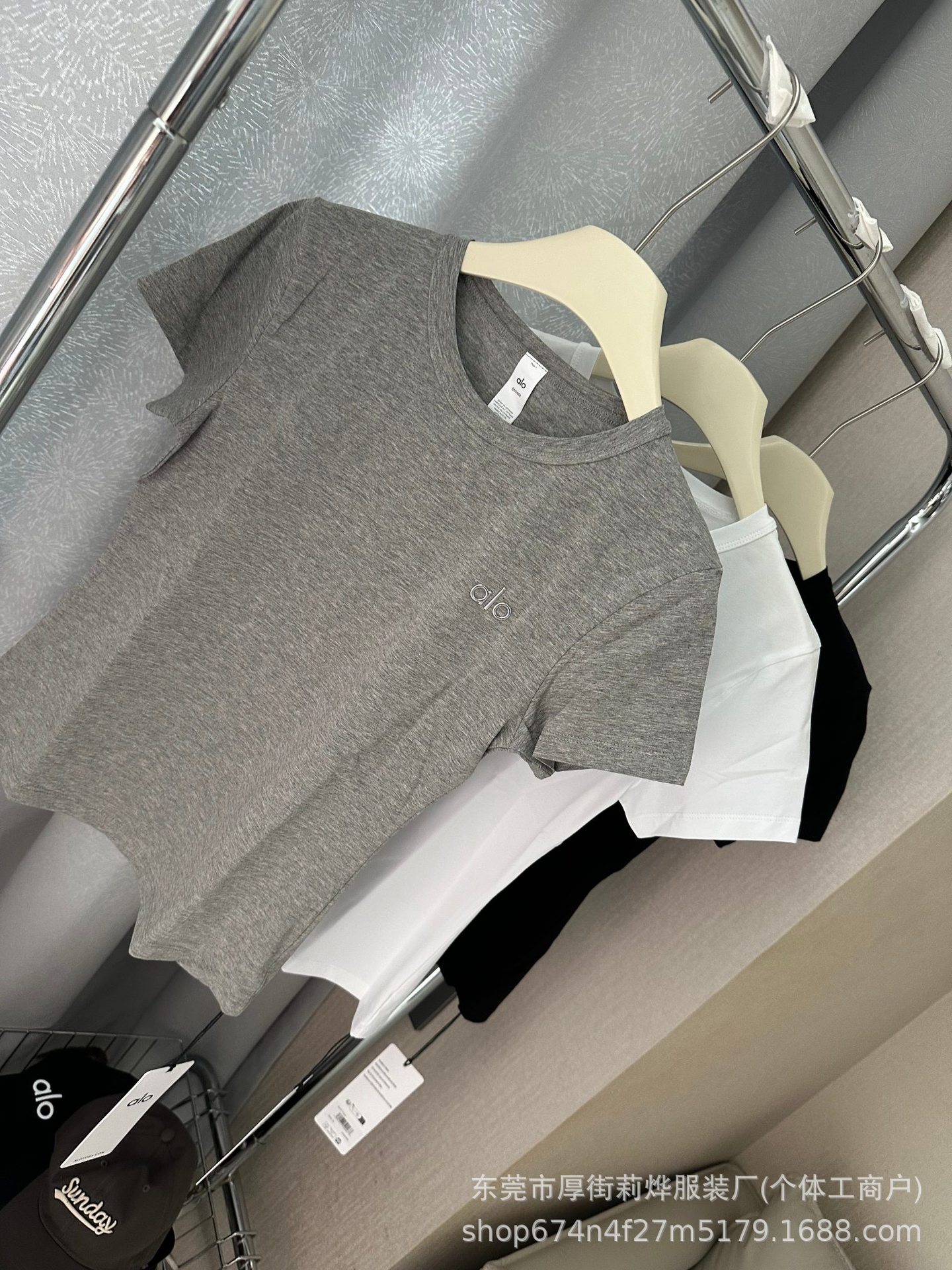 alo short-sleeved T-shirt 2025 New style, trendy letter embossed print, women's special, sporty and casual, versatile round neck short-sleeved