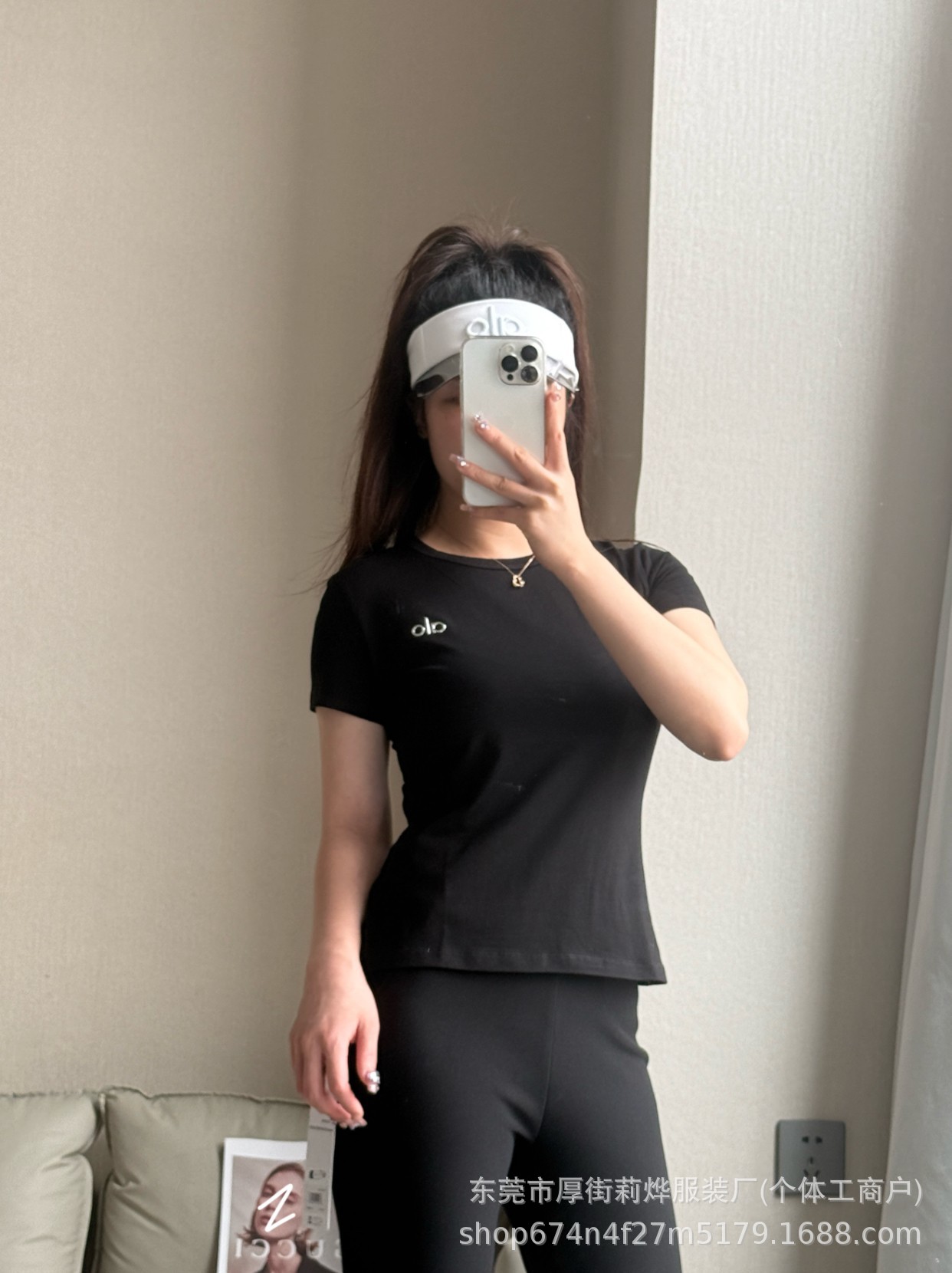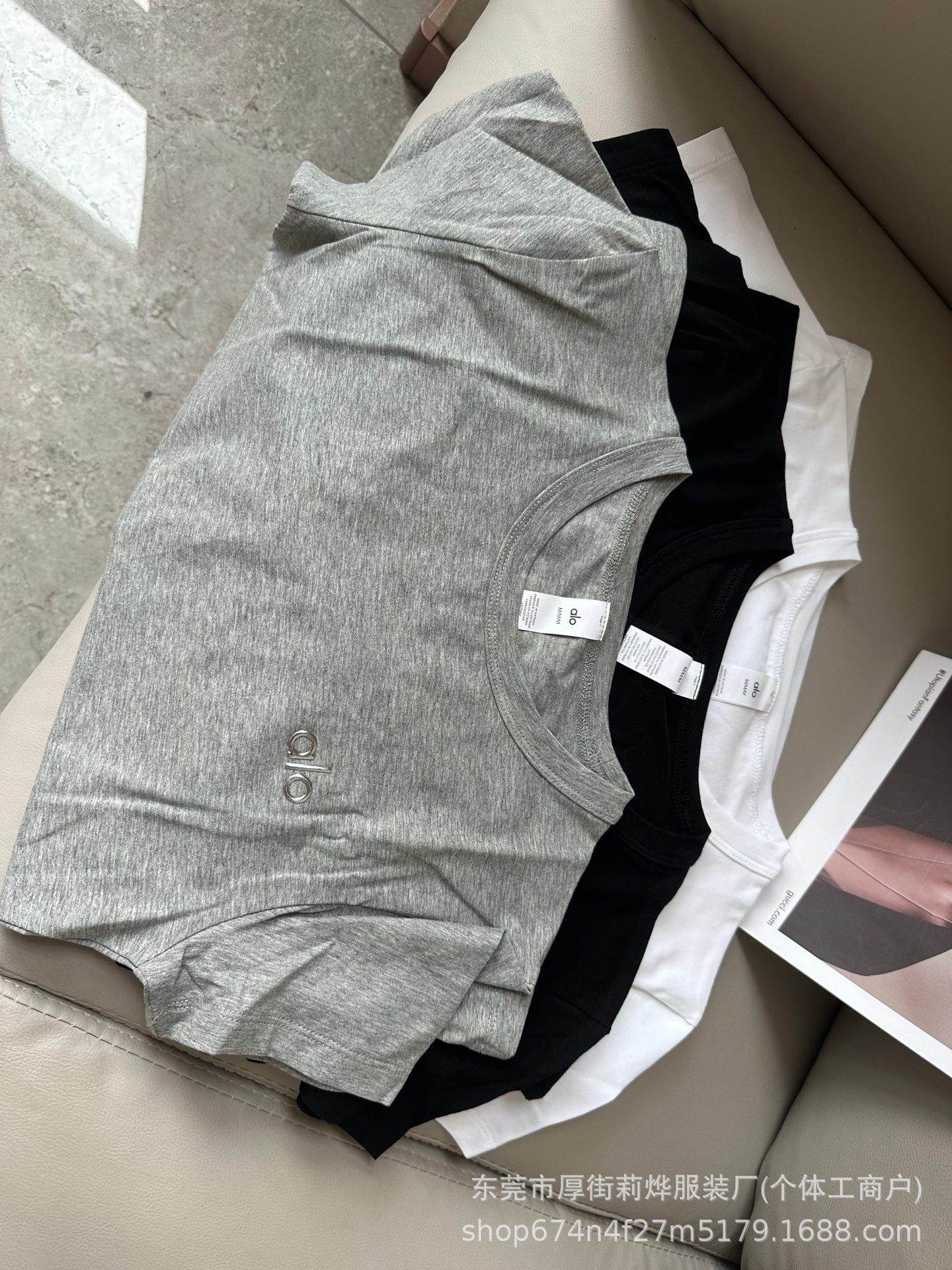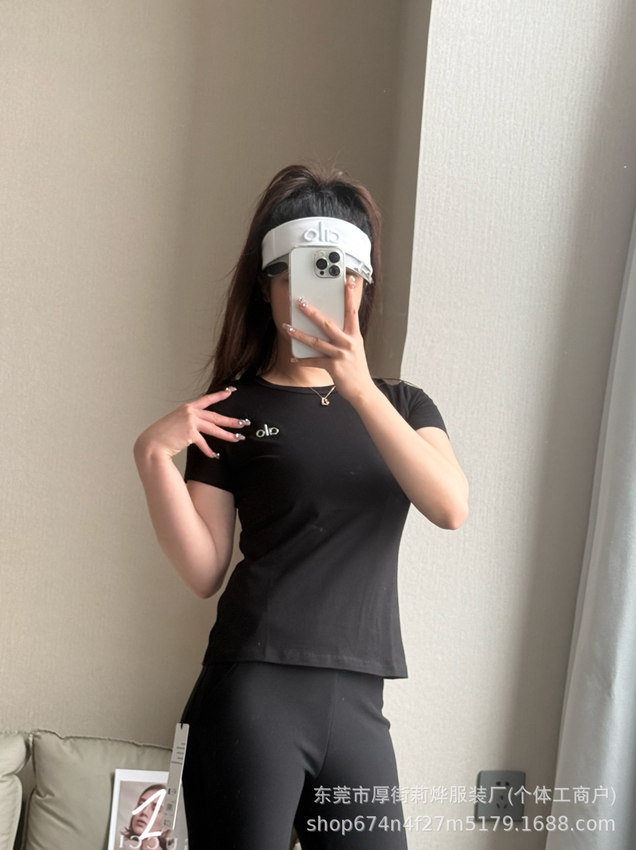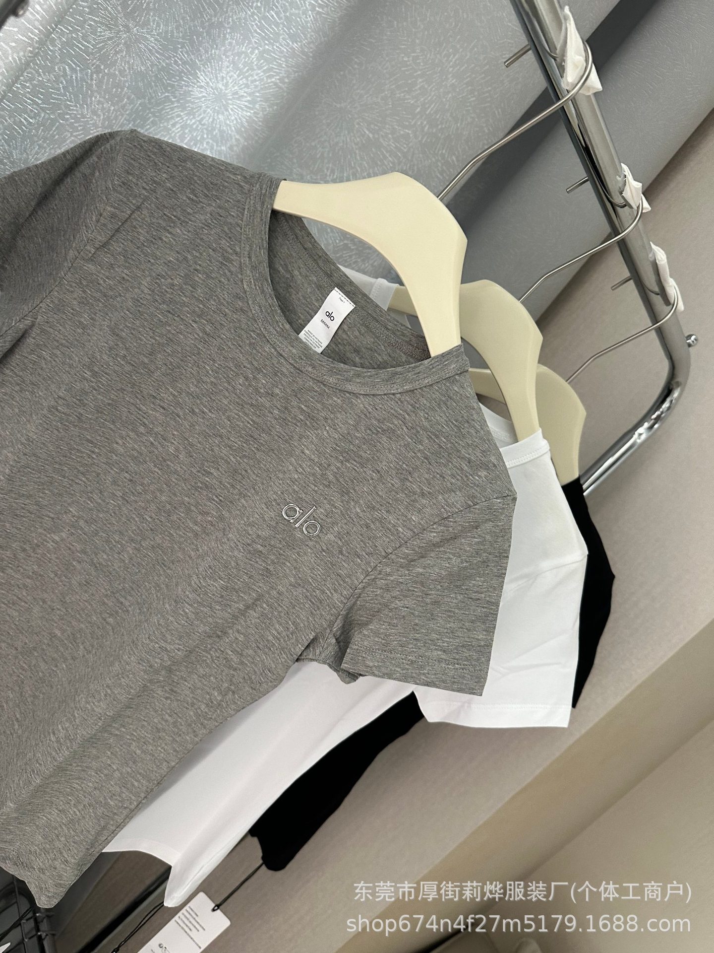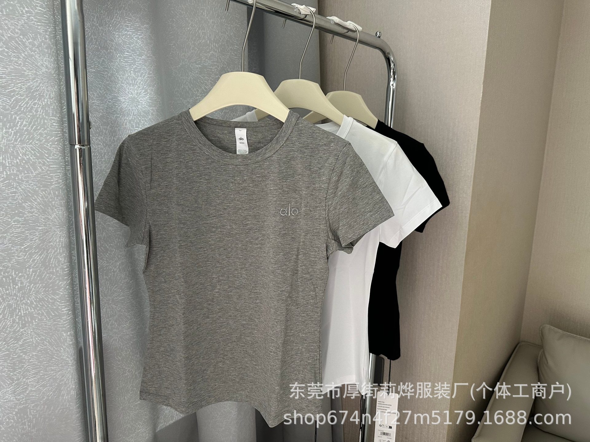 alo short-sleeved T-shirt 2025 New style, trendy letter embossed print, women's special, sporty and casual, versatile round neck short-sleeved