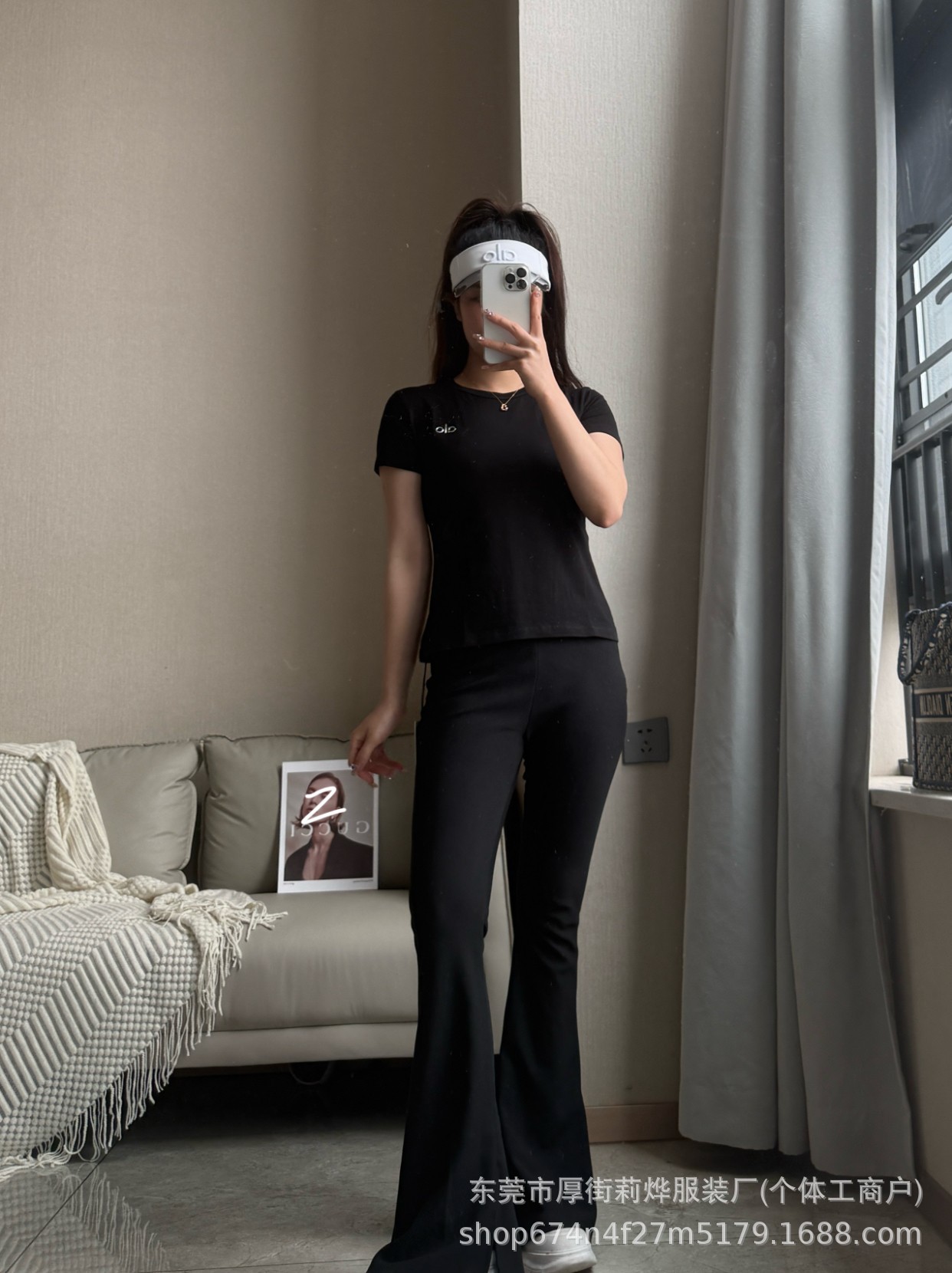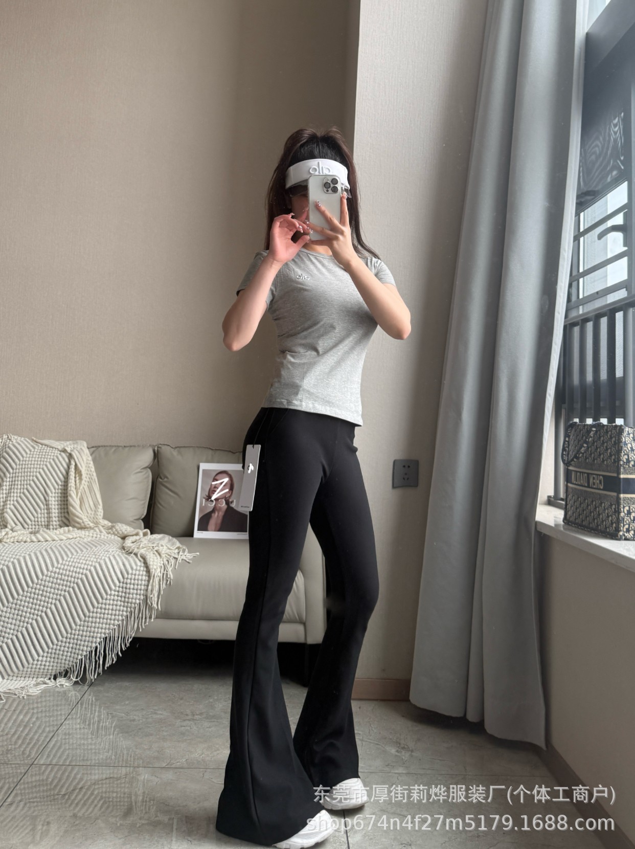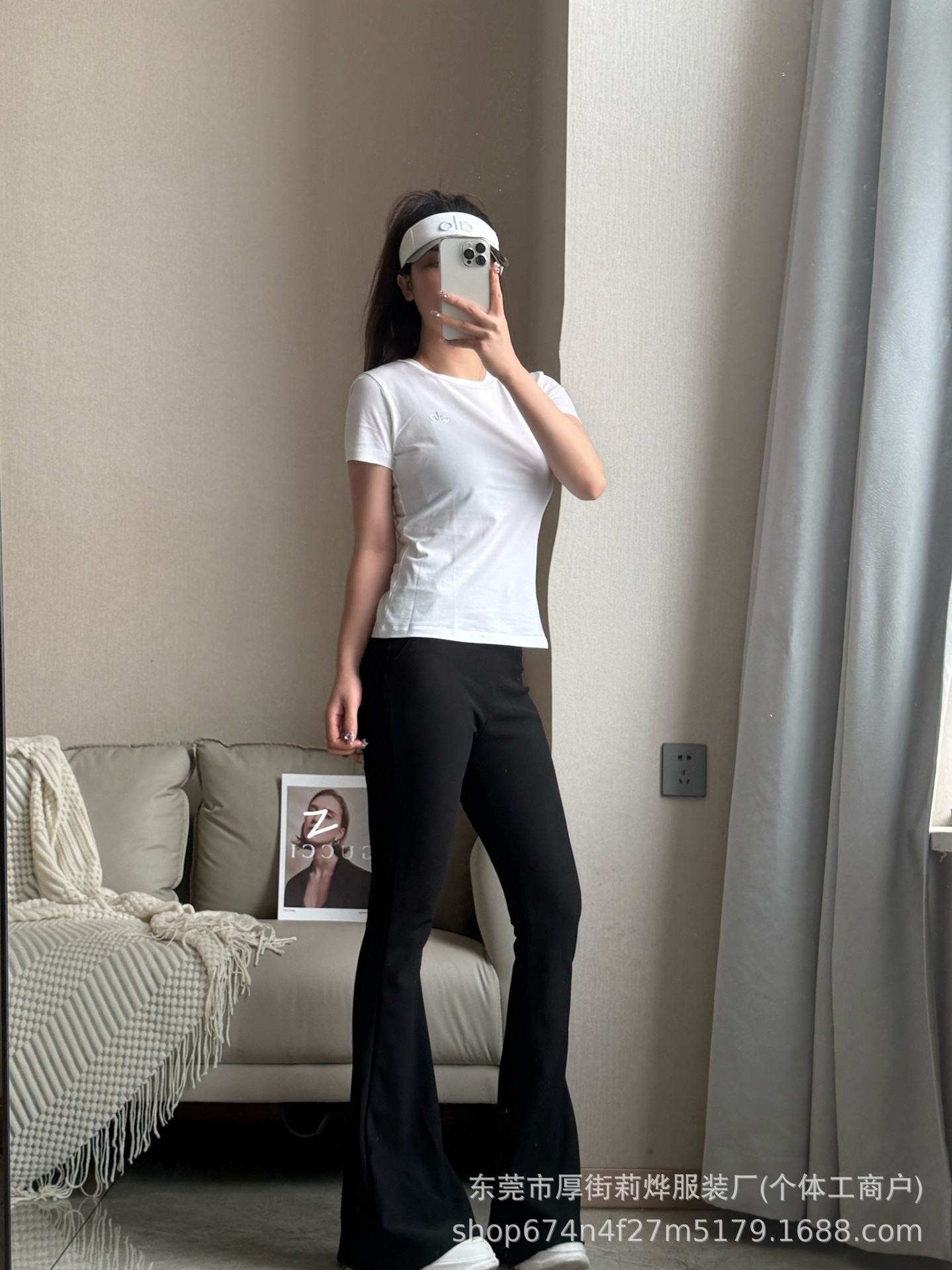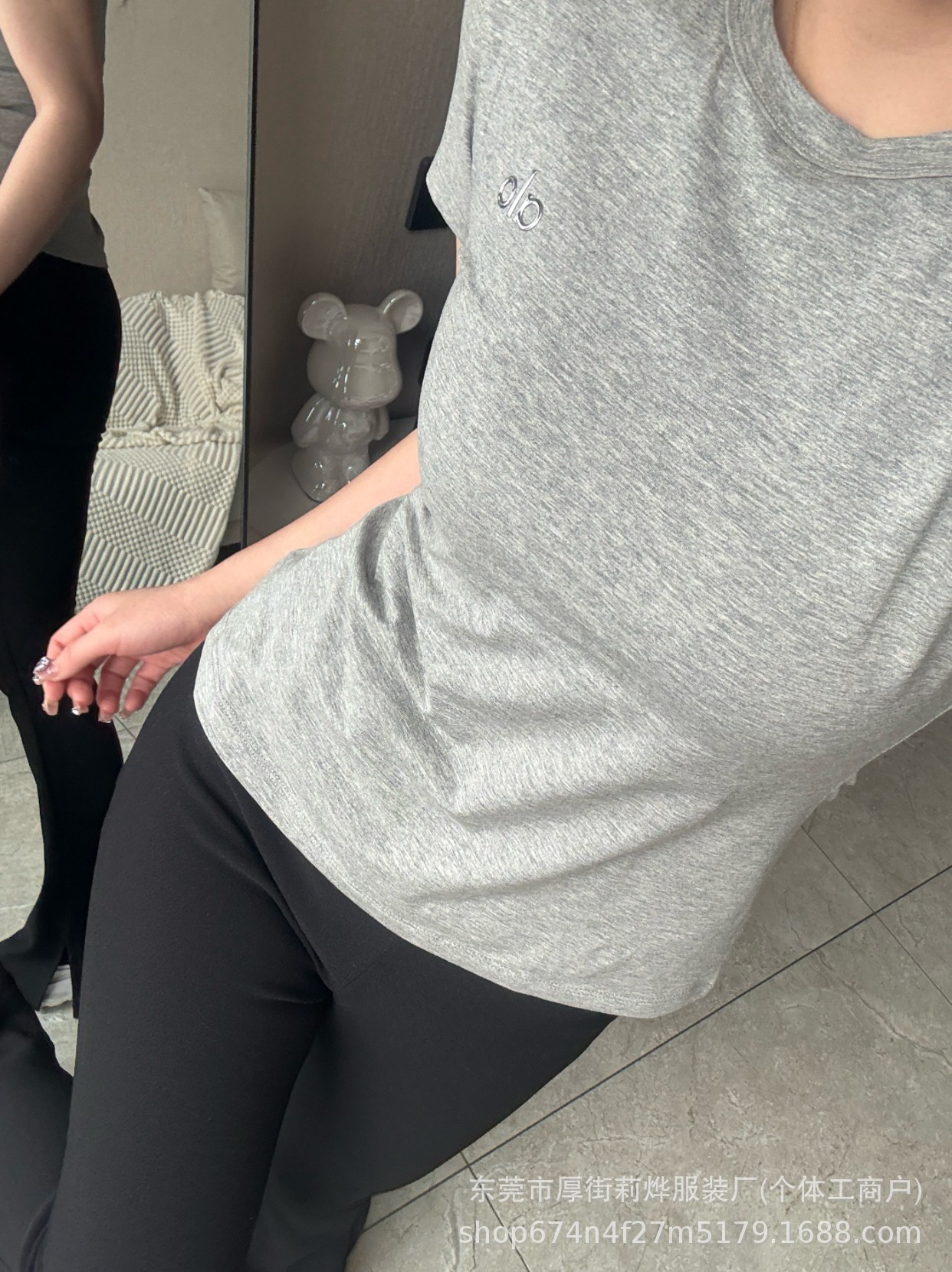 alo short-sleeved T-shirt 2025 New style, trendy letter embossed print, women's special, sporty and casual, versatile round neck short-sleeved