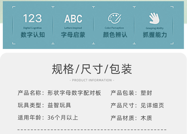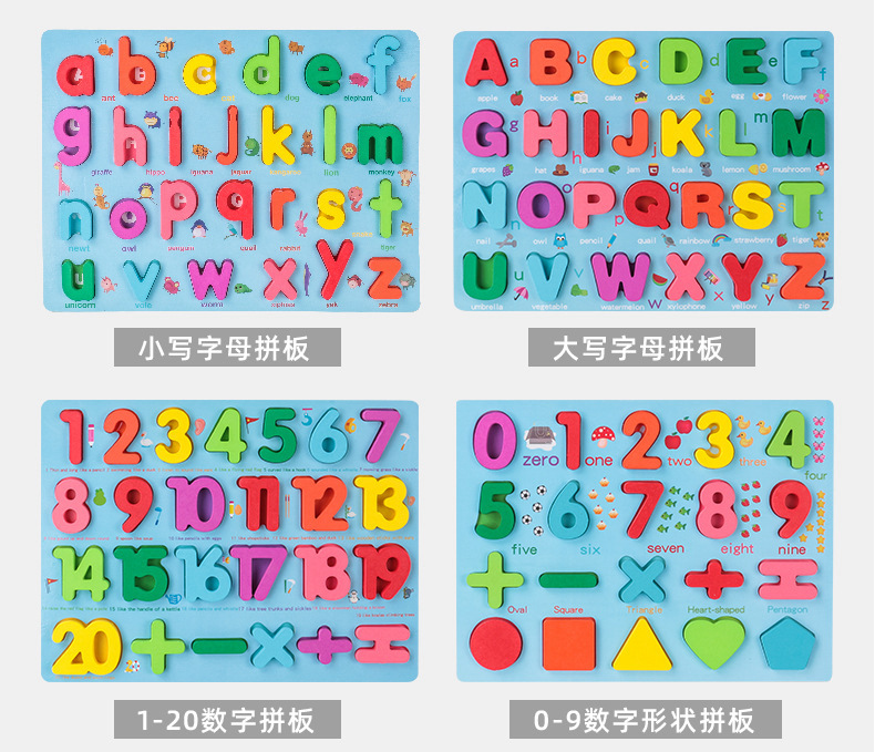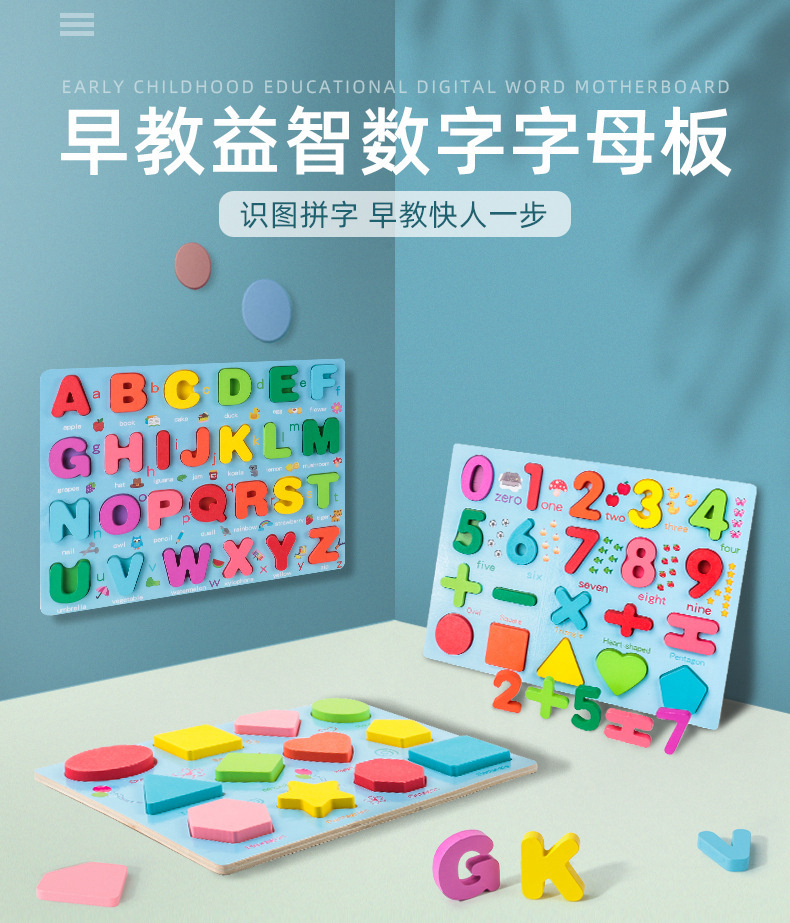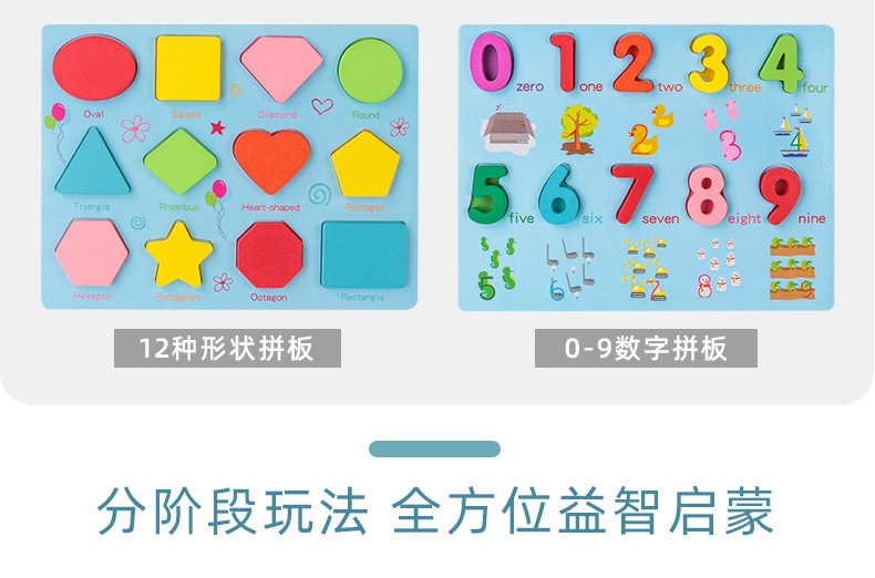 Alphanumeric puzzles, wooden puzzles, geometric shapes, children's early education hand-held boards, cognitive matching building blocks