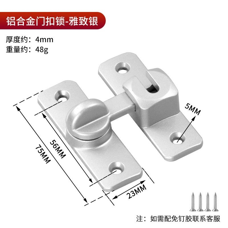 Aluminum alloy door latch, 180-degree swing door without drilling, latch, door bolt, sliding door, buckle, 90-degree anti-theft door