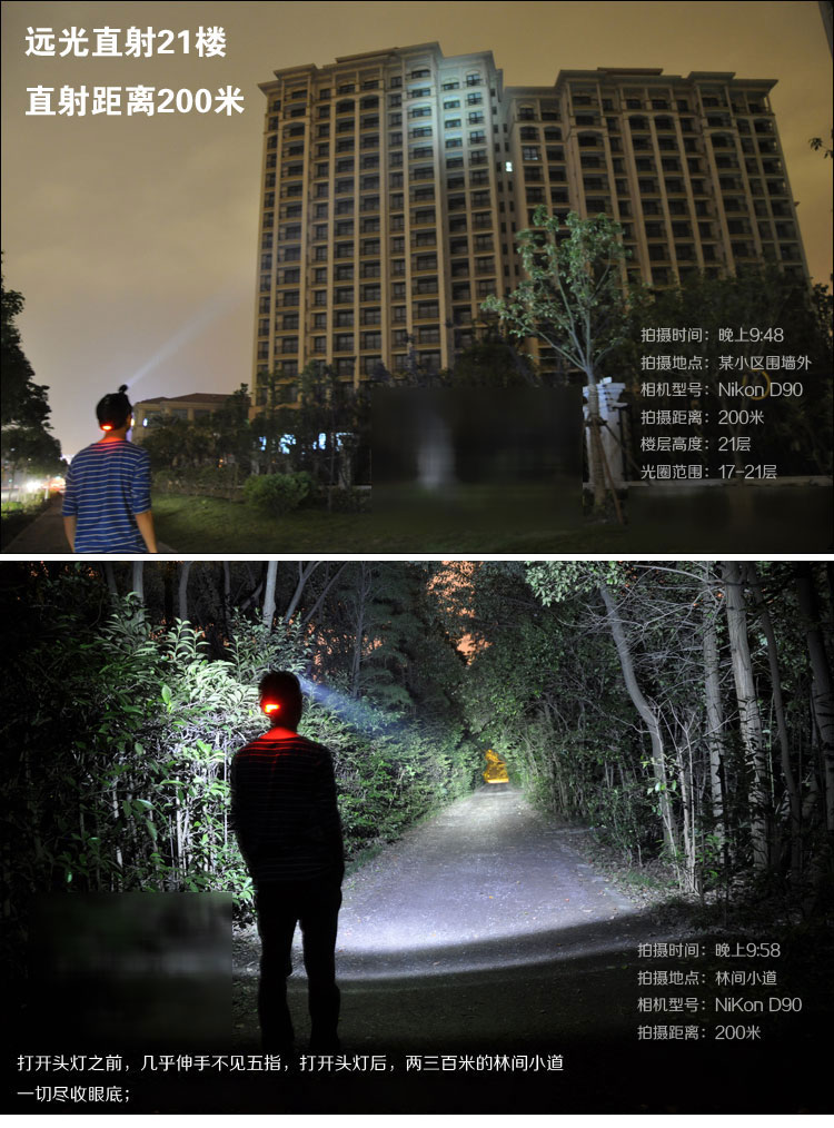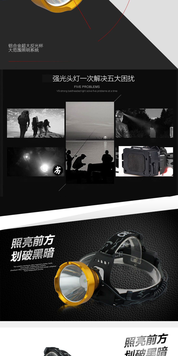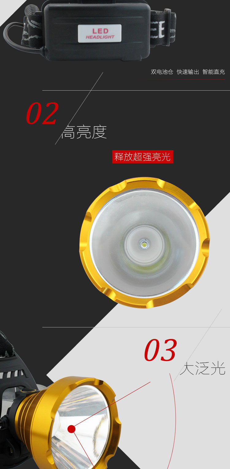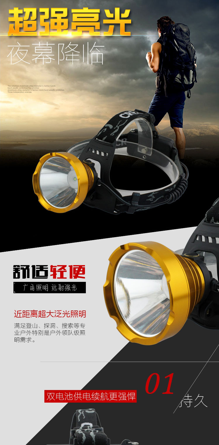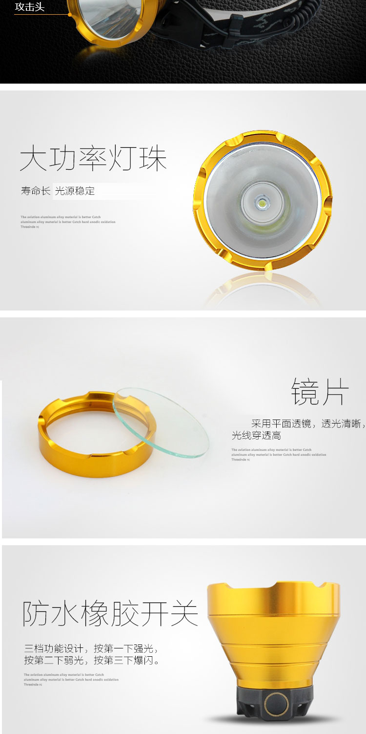 Aluminum alloy LED high-intensity headlamp, rechargeable miner's lamp, 18650 long-range shooting factory wholesale
