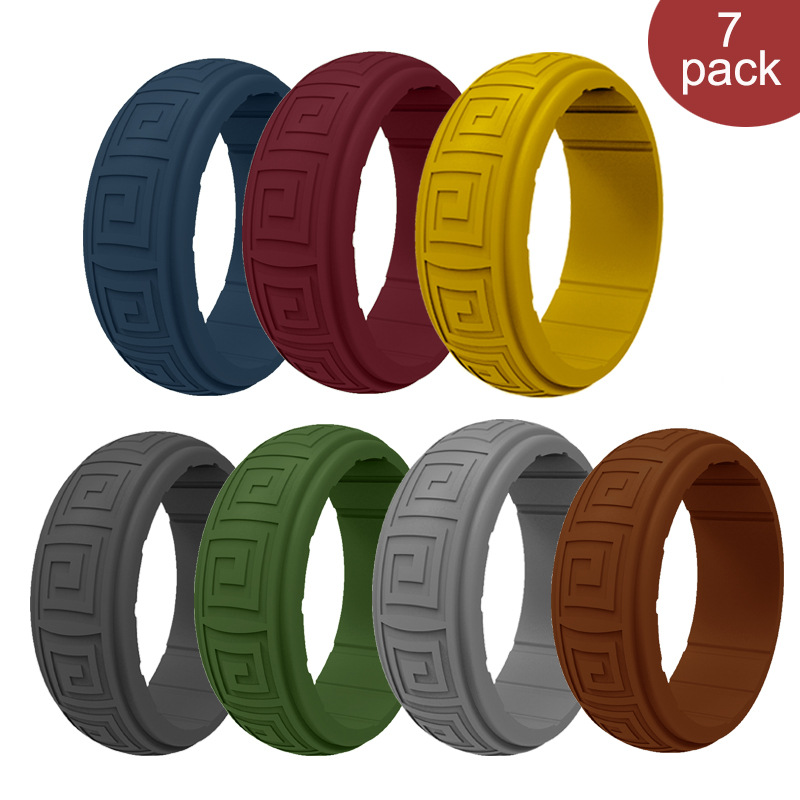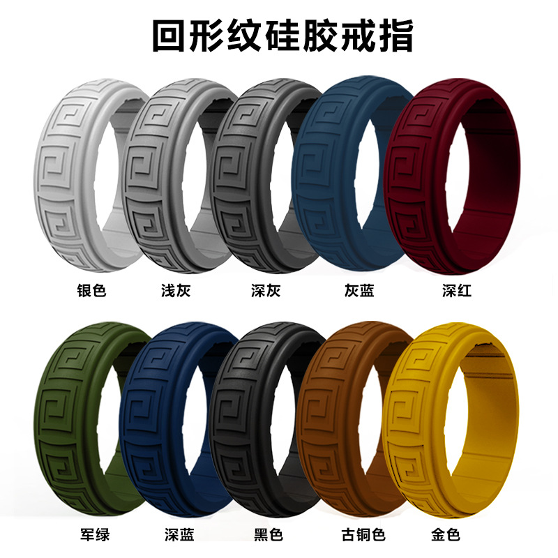 New circular pattern silicone ring, breathable sports ring, men's silicone ring in 10 colors