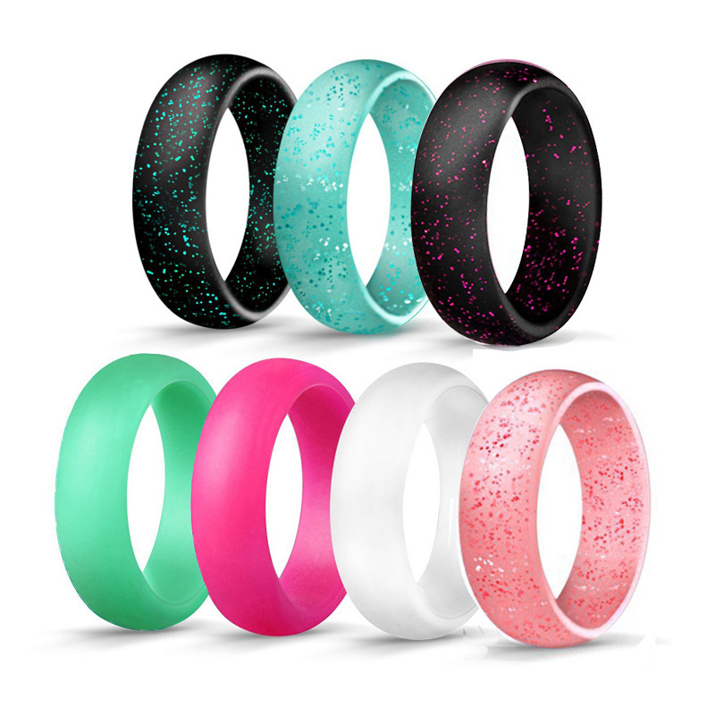5.7mm wide 4-color set trendy silicone ring, glitter women's silicone ring