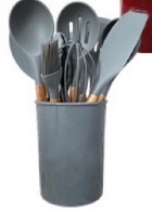 Amazon cooking non-stick pan storage bucket wooden handle silicone kitchenware 12-piece set Silicone kitchen utensils spatula and spoon set