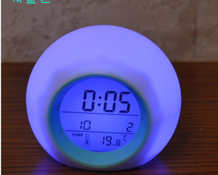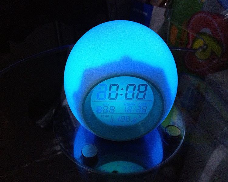 Amazon creative circular seven-color alarm clock, perpetual calendar, bedside spherical children's alarm clock, natural sound table clock