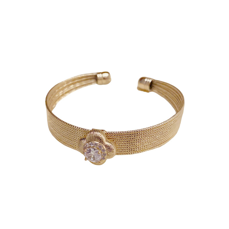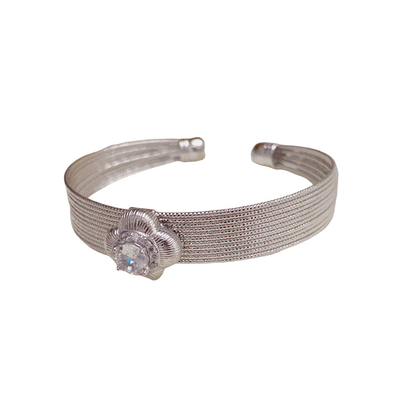 Amazon cross-border personalized, light luxury, high-end metal diamond-encrusted four-leaf flower open bracelet, fashionable and versatile wristband for women