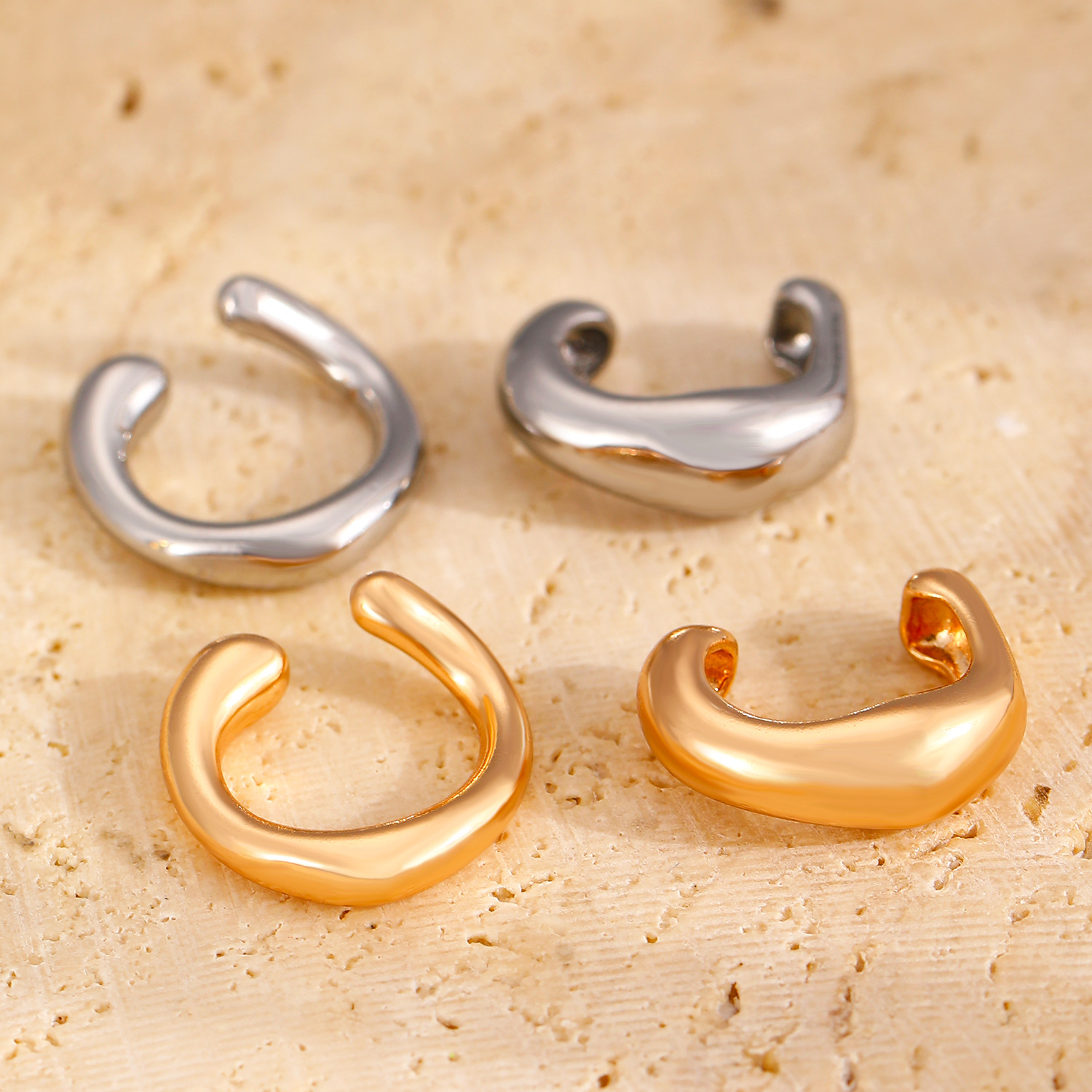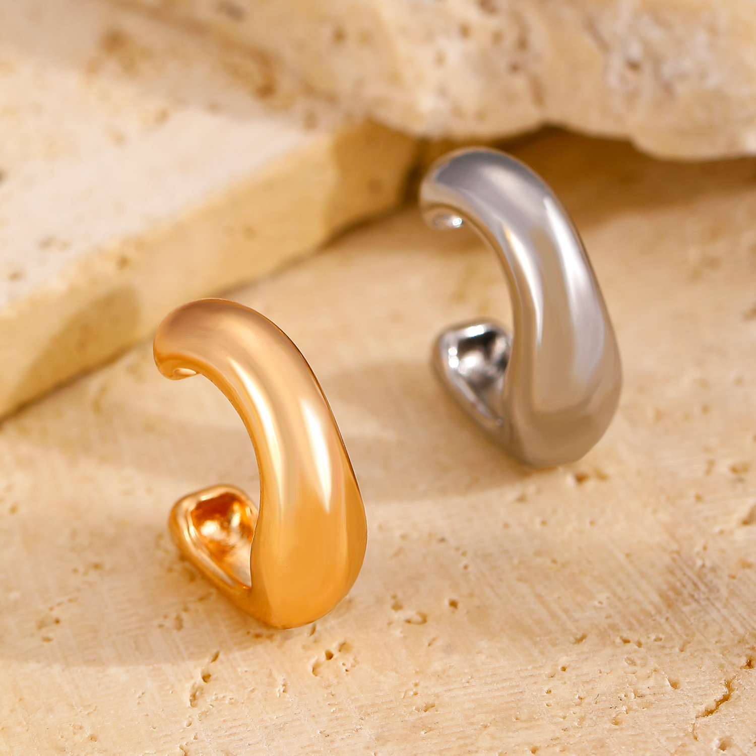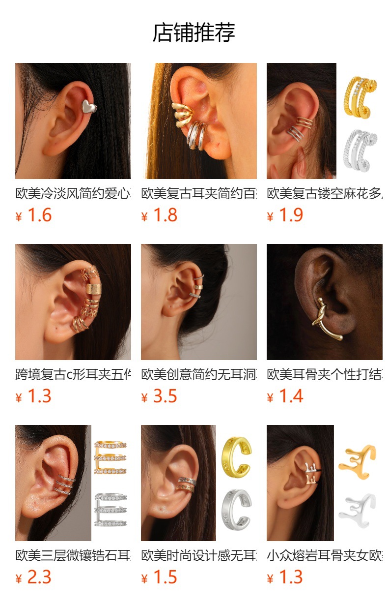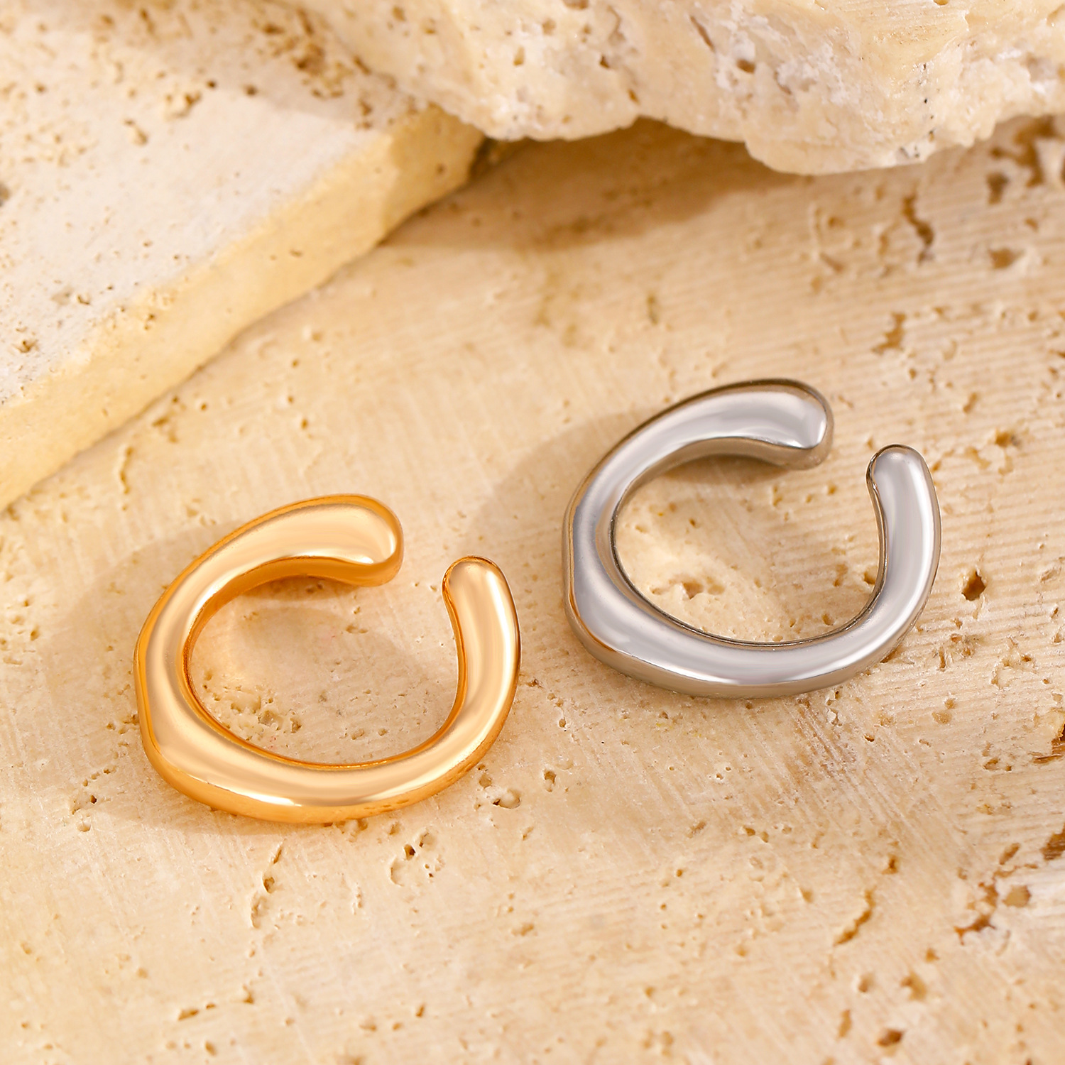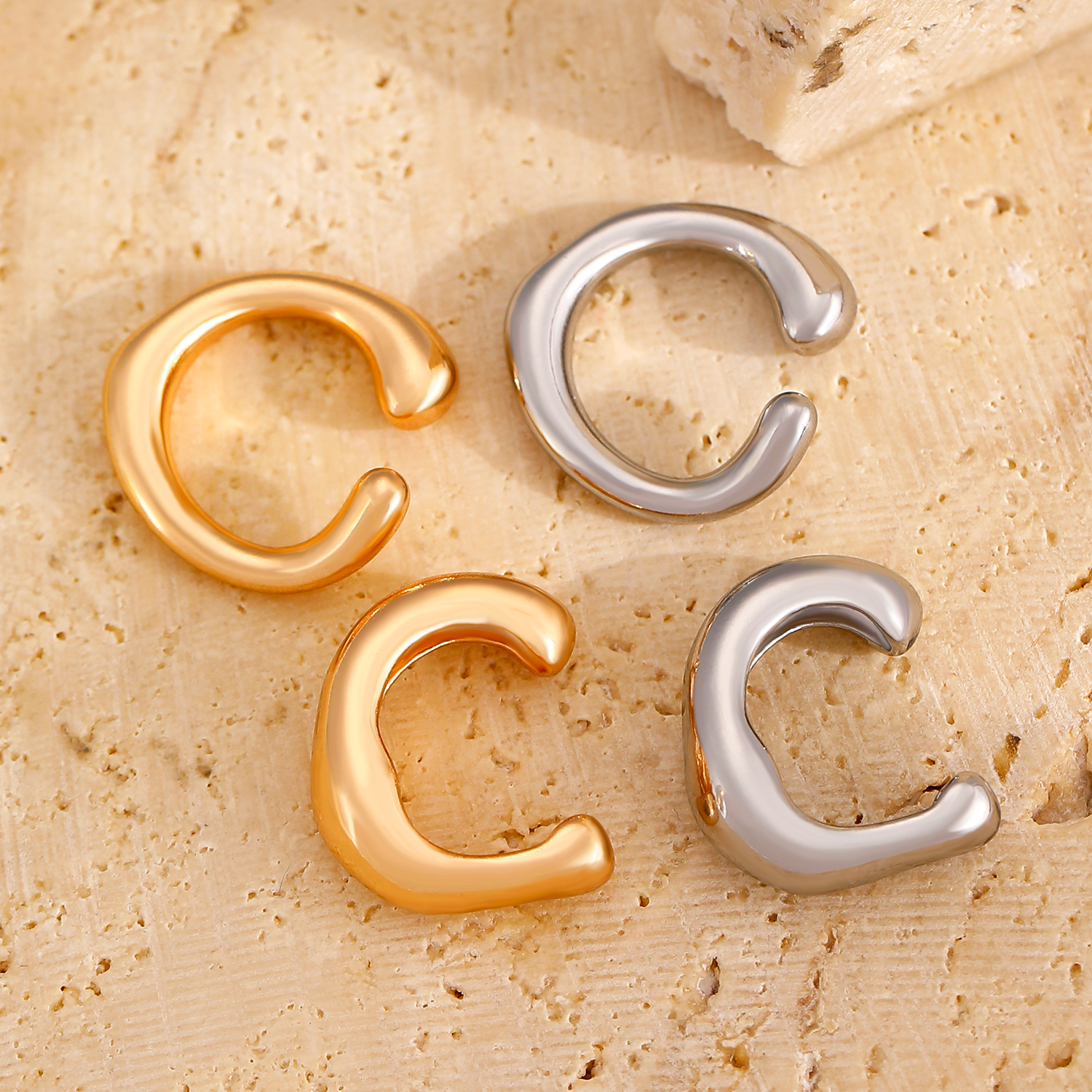 Amazon Cross-border's new thick-ring C-shaped open-ear earrings are fashionable, commuting, simple and no-ear piercing accessories