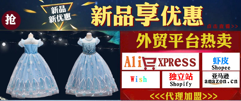 Amazon Girls' Princess Dress Autumn Edition Aurora Princess Christmas Performance Dress Ice and Snow Children's Clothing in stock
