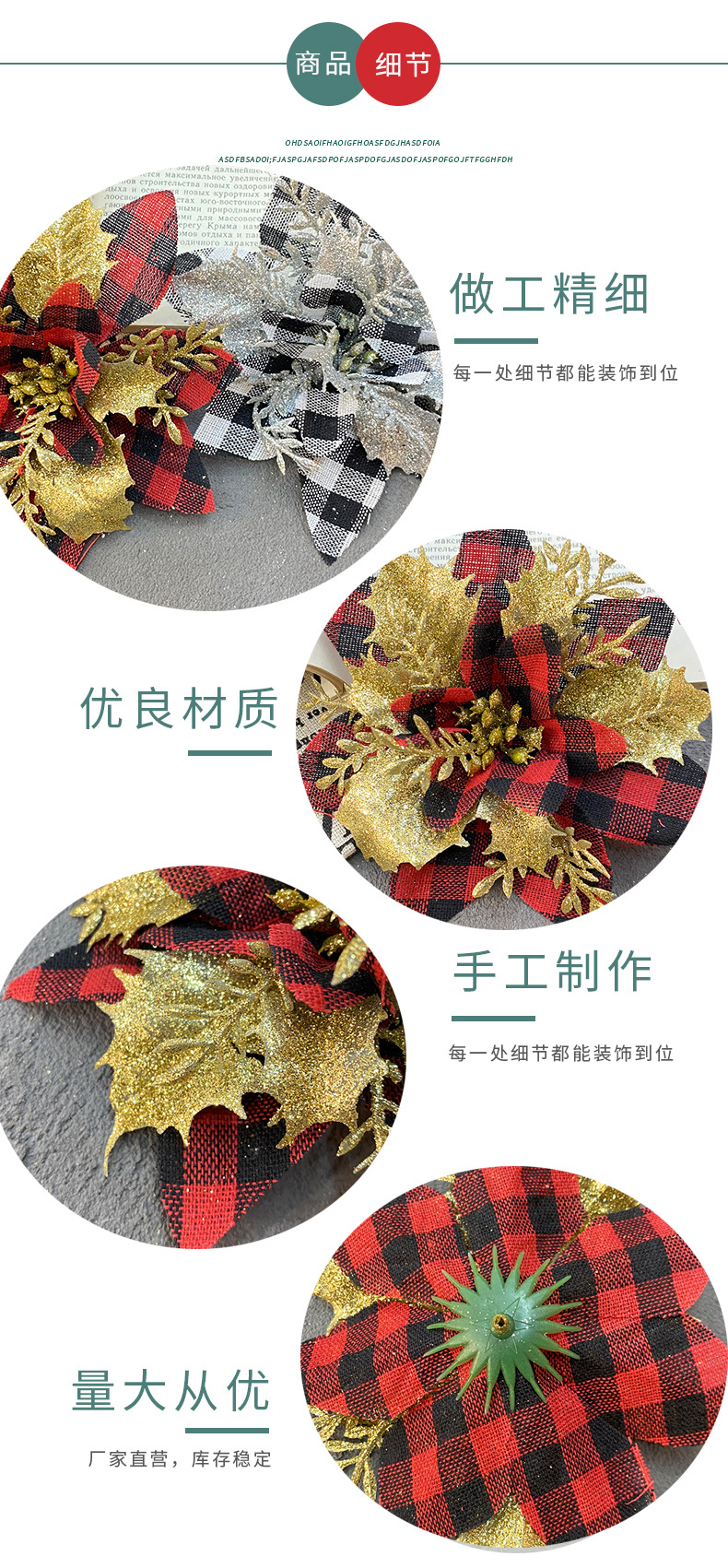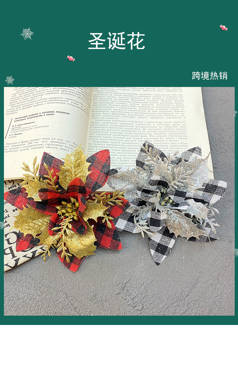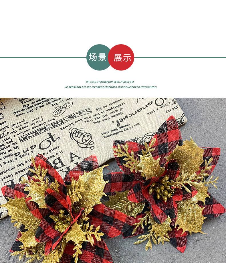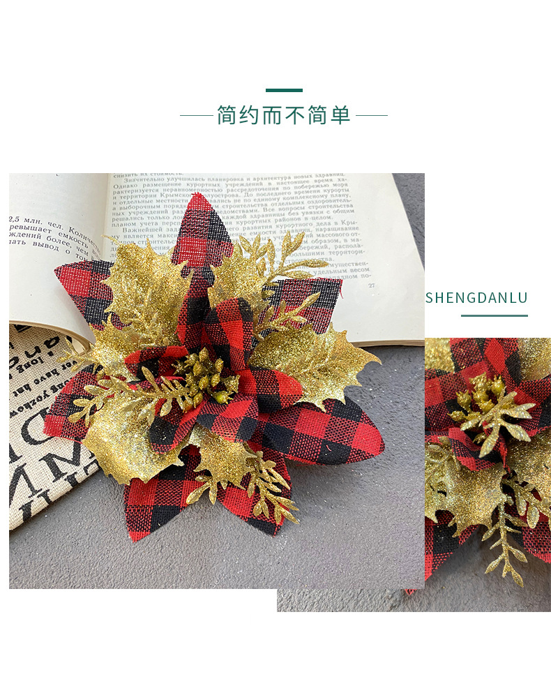 Amazon's new Christmas flower, Christmas red checkered Christmas gold powder flower, three-dimensional three-layer gold powder flower Christmas decoration