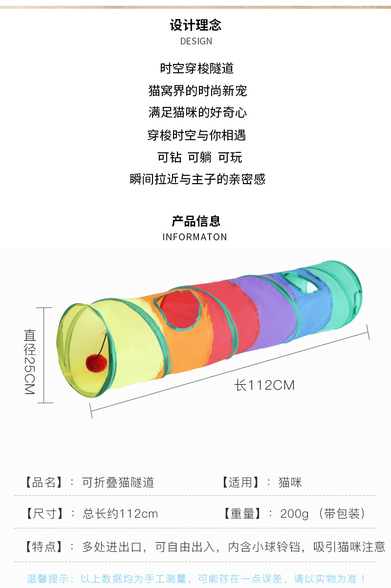 Amazon's new Rainbow Straight-through Cat Tunnel, a self-entertaining and educational cat toy, is a foldable cat tunnel