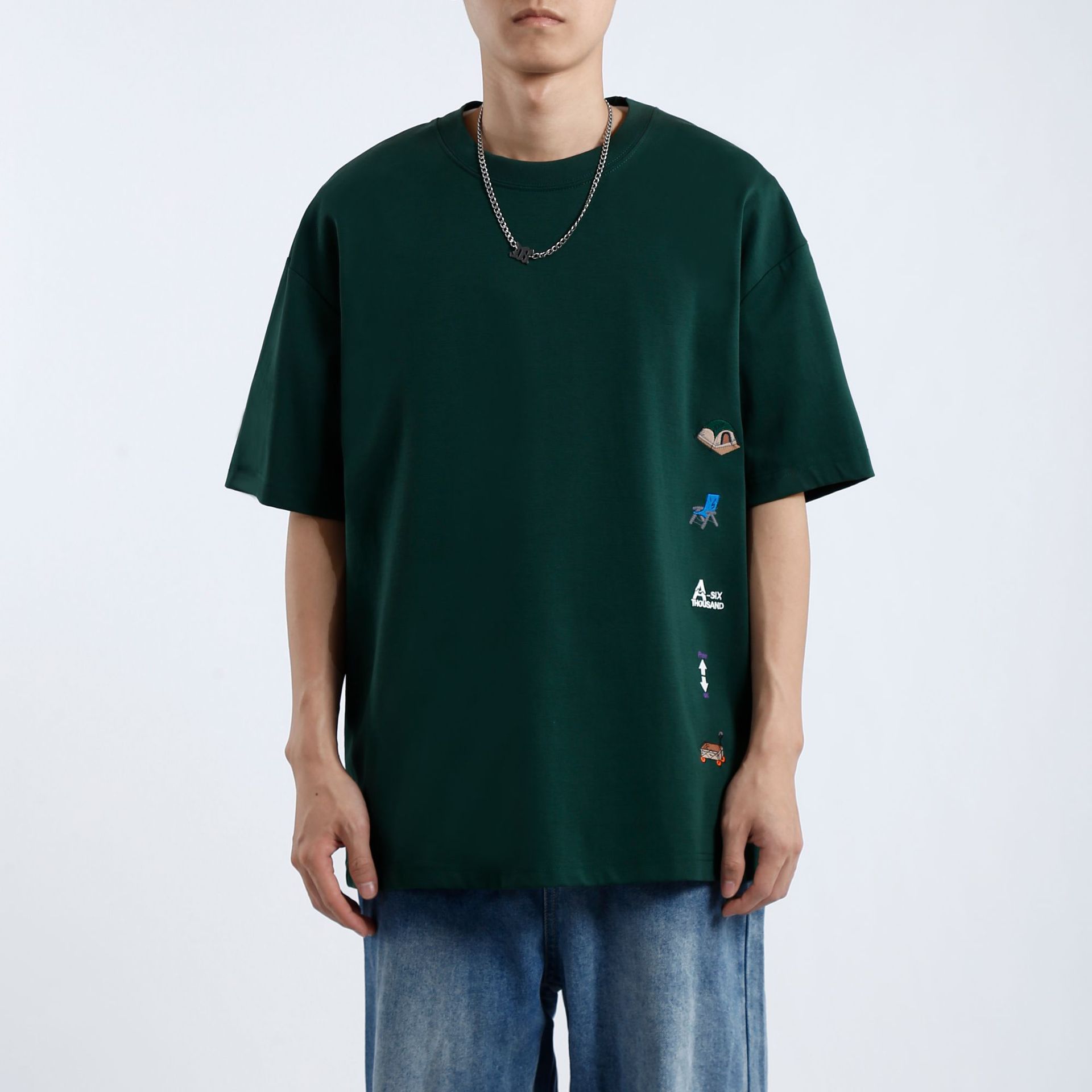 American 250G heavy-duty T-shirt men's short-sleeved summer 2024 new style loose half-sleeved embroidered round-neck T-shirt base layer, trendy
