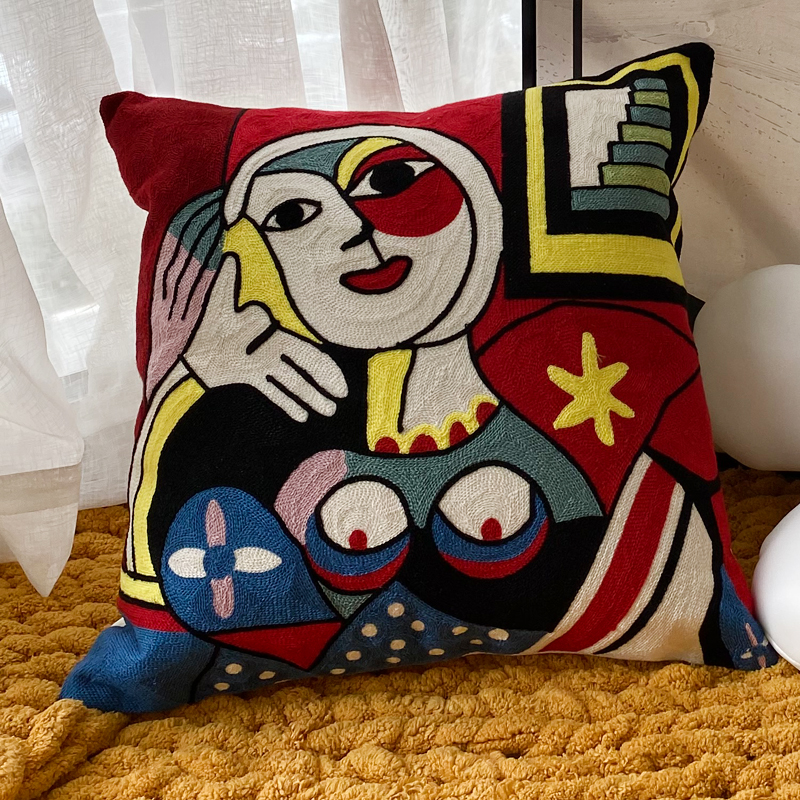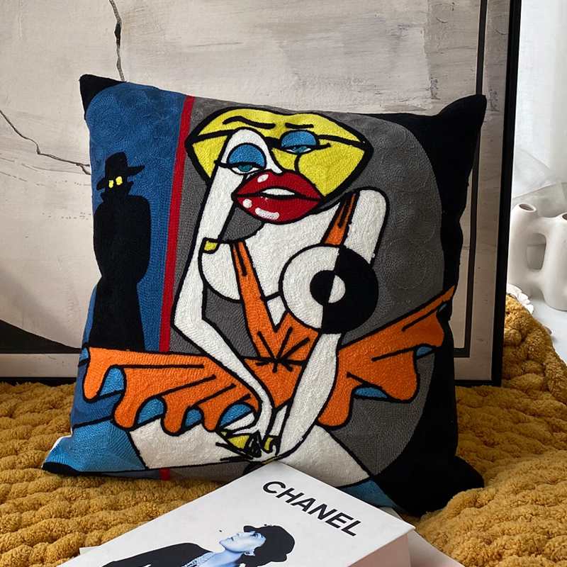 American cartoon Picasso embroidered throw pillow sofa cushion cover, headboard large backrest lumbar support, nap office throw cover