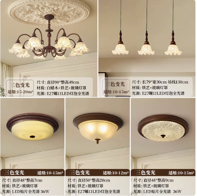 American country-style living room chandelier, Chinese-style retro hall main light, French romantic lily of the valley, dining room and bedroom lamps