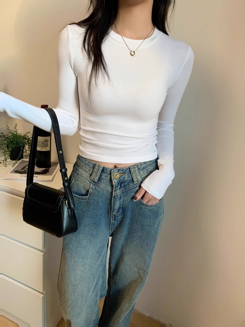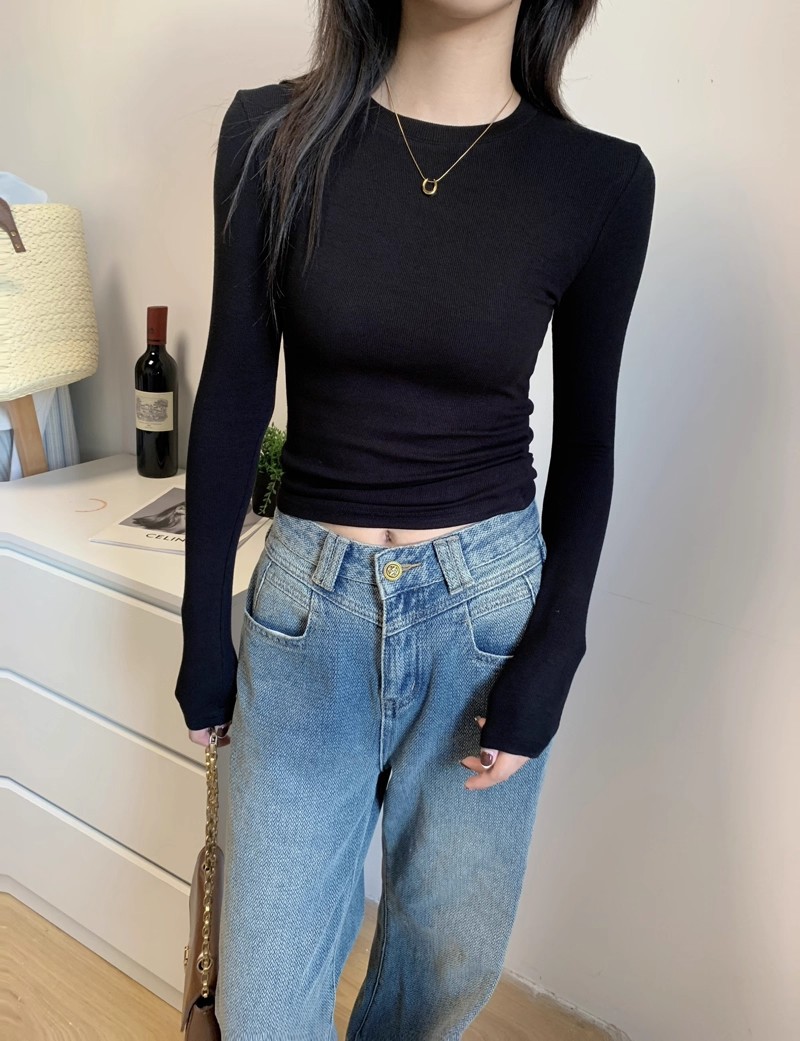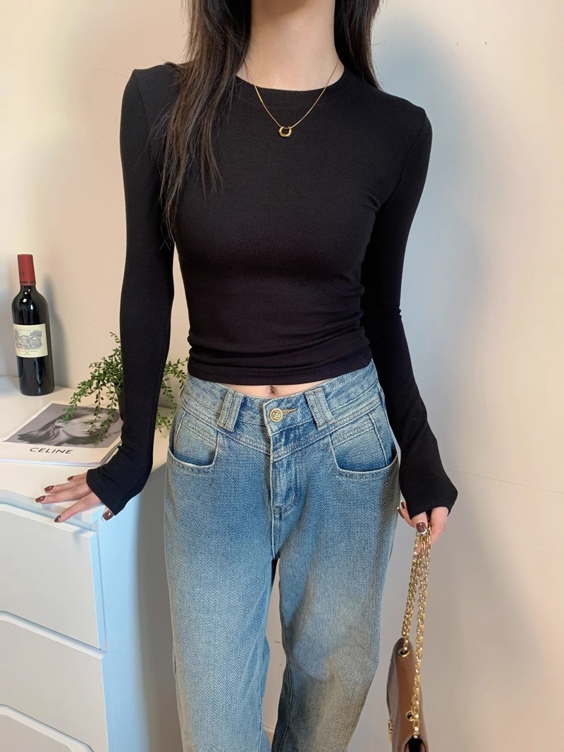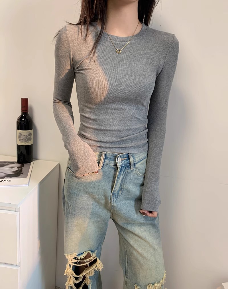 American grey off-the-shoulder long-sleeved T-shirt women's base layer, spring, autumn and winter threaded inner layer base layer, slim and versatile top trend