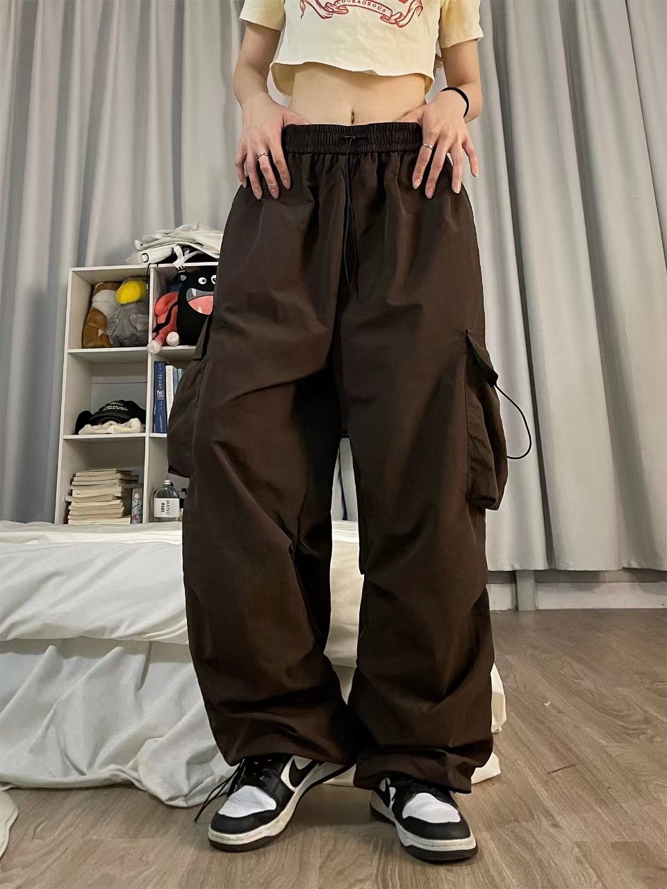 American retro workwear casual pants, women's summer versatile straight-leg drape tight-fitting trousers, loose wide-leg pants, ins
