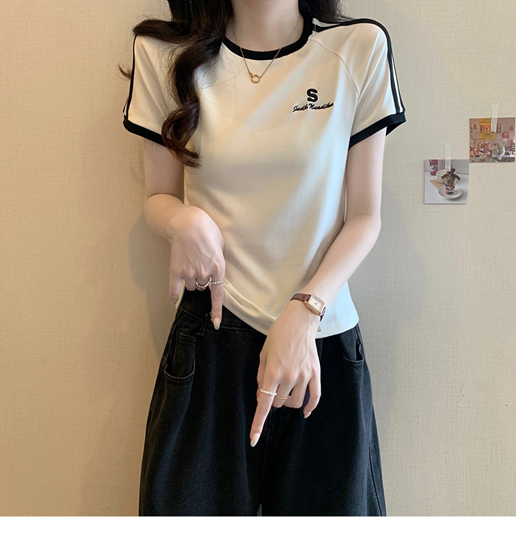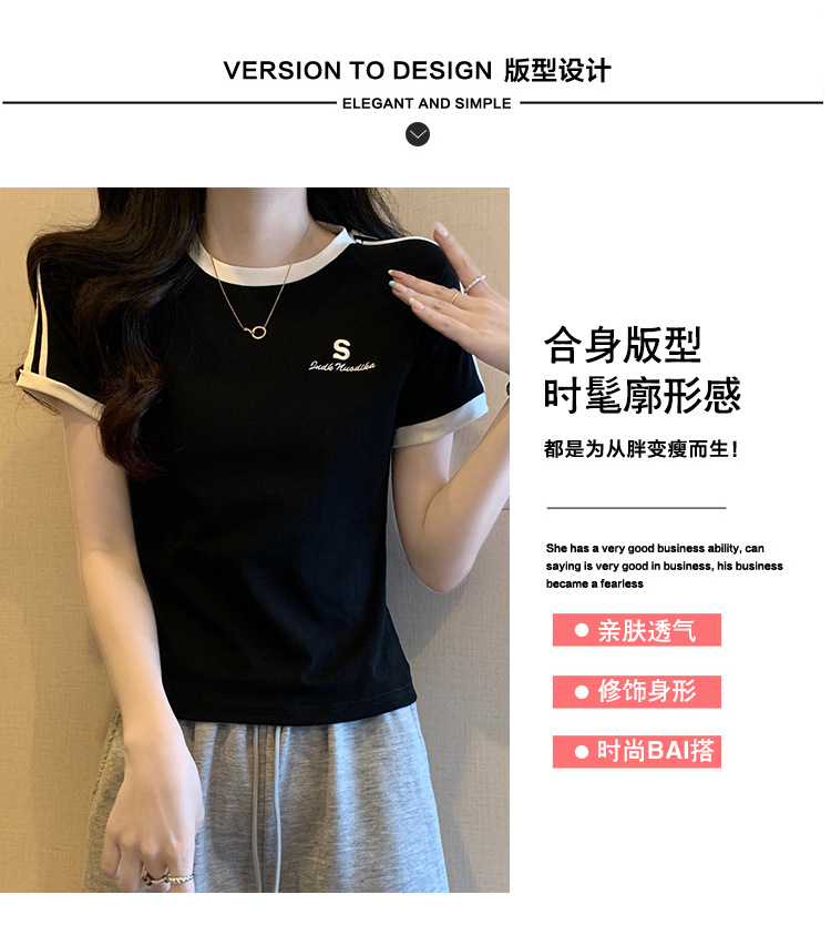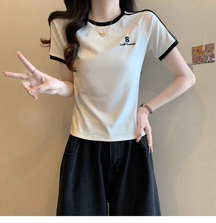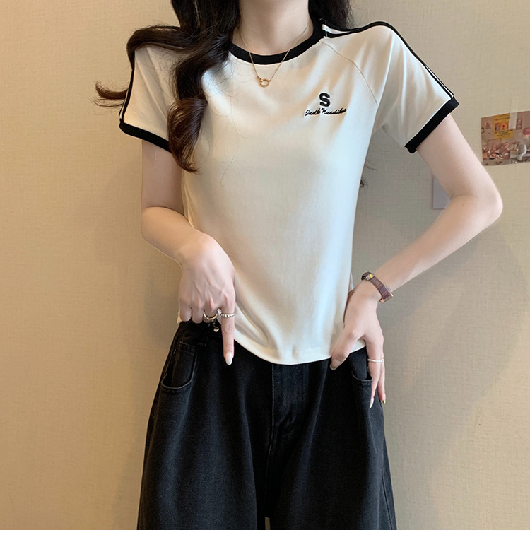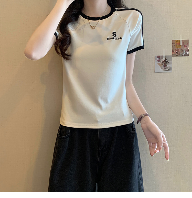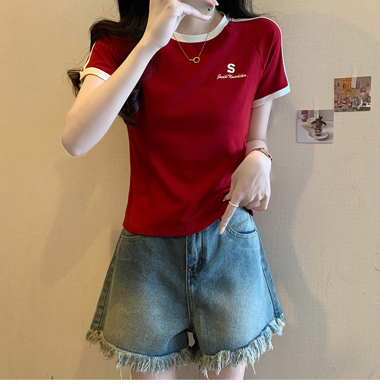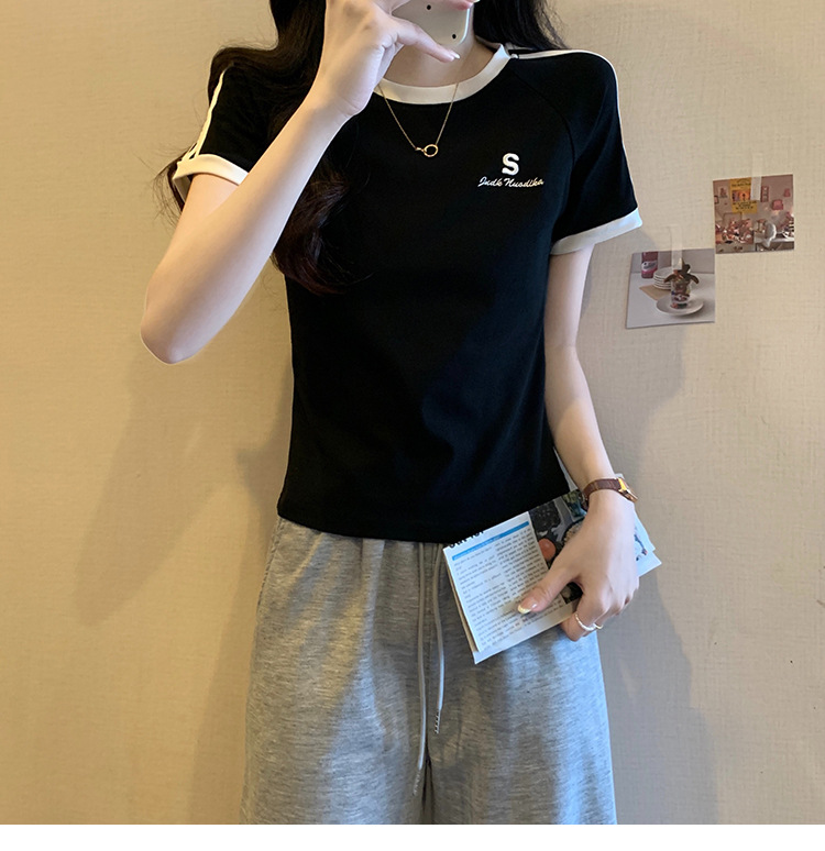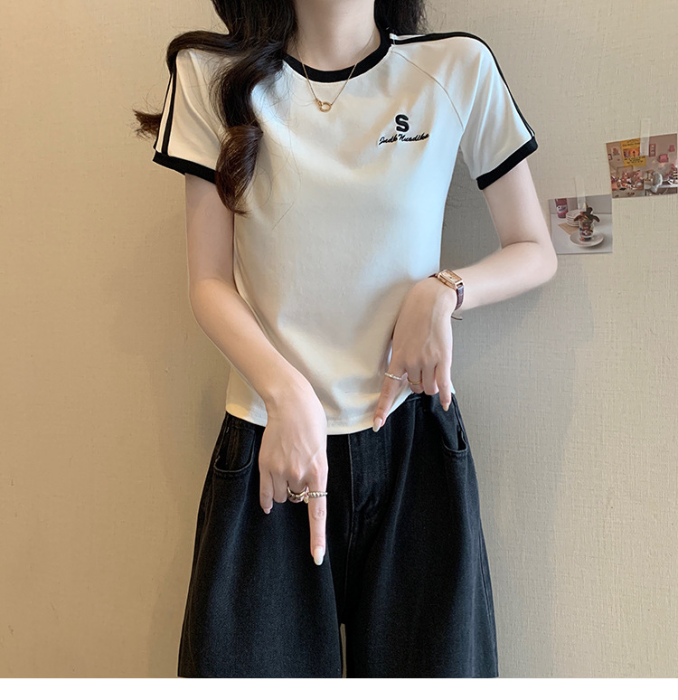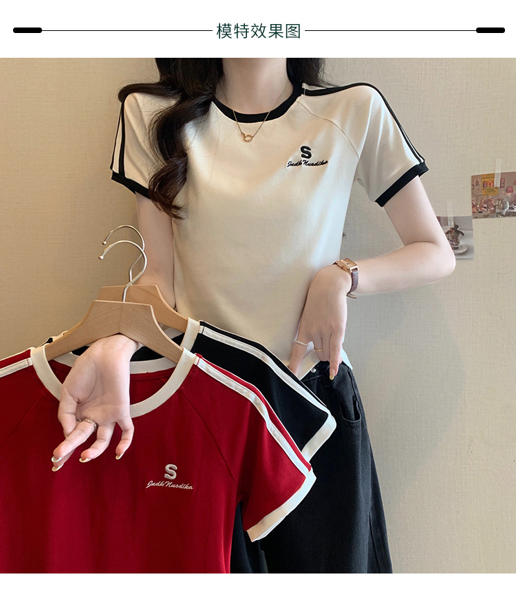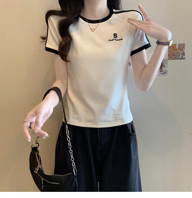 American shoulder-length round-neck short-sleeved T-shirt women's 2024 summer new style, a slimming and figure-hugging short T-shirt top for hot girls