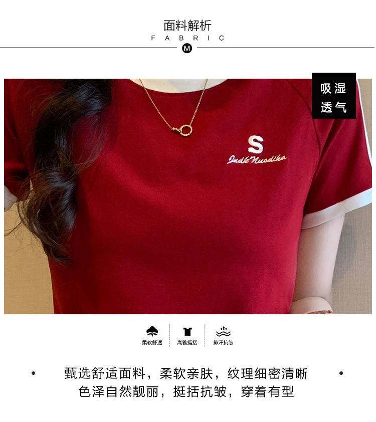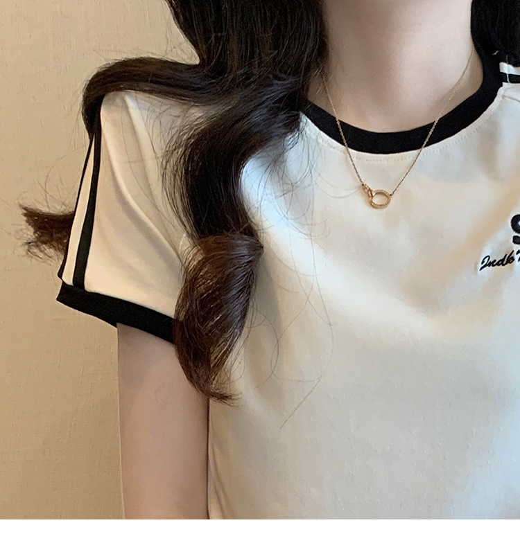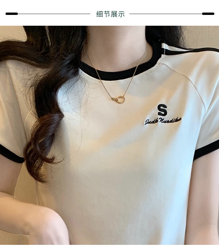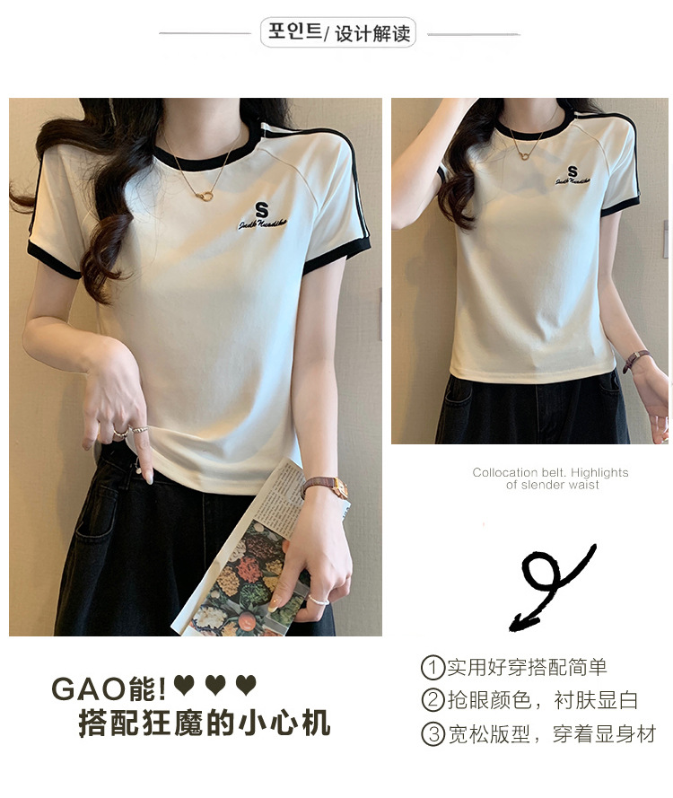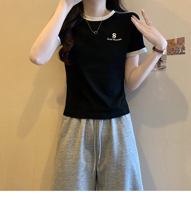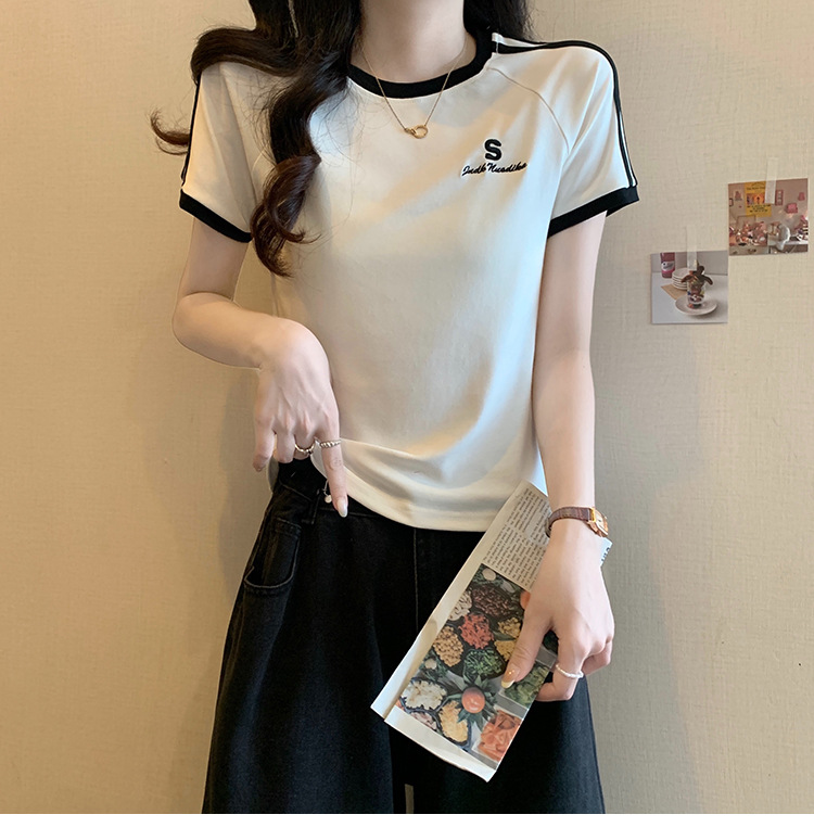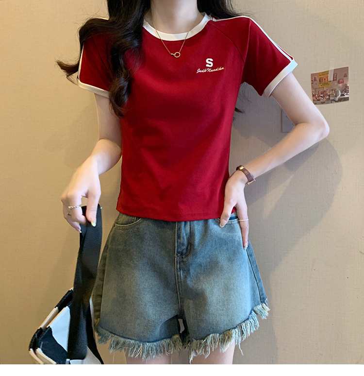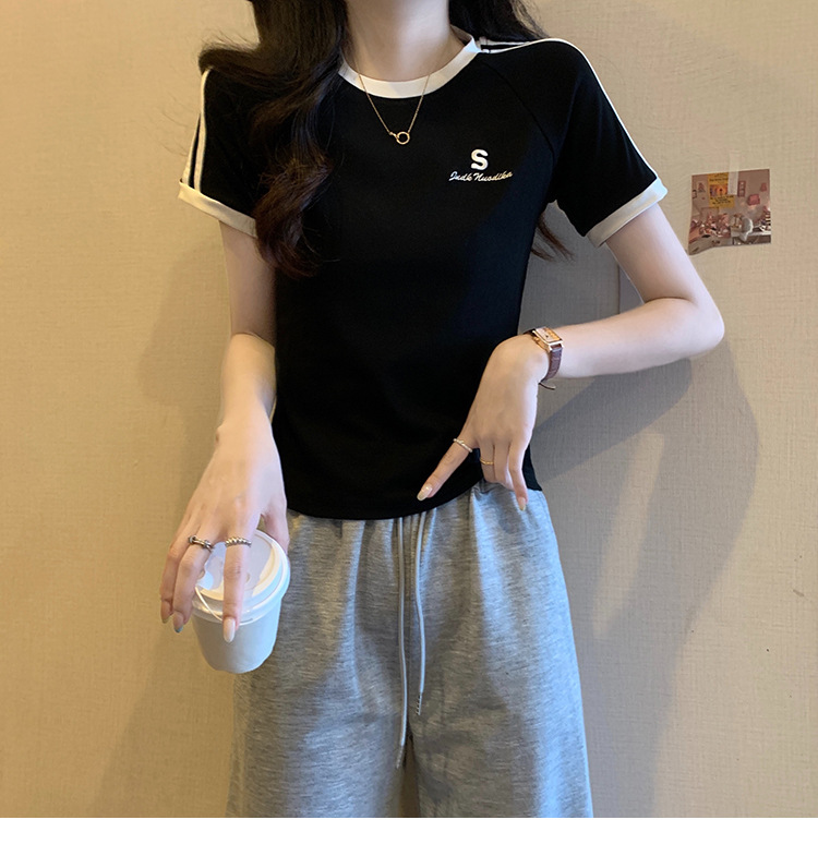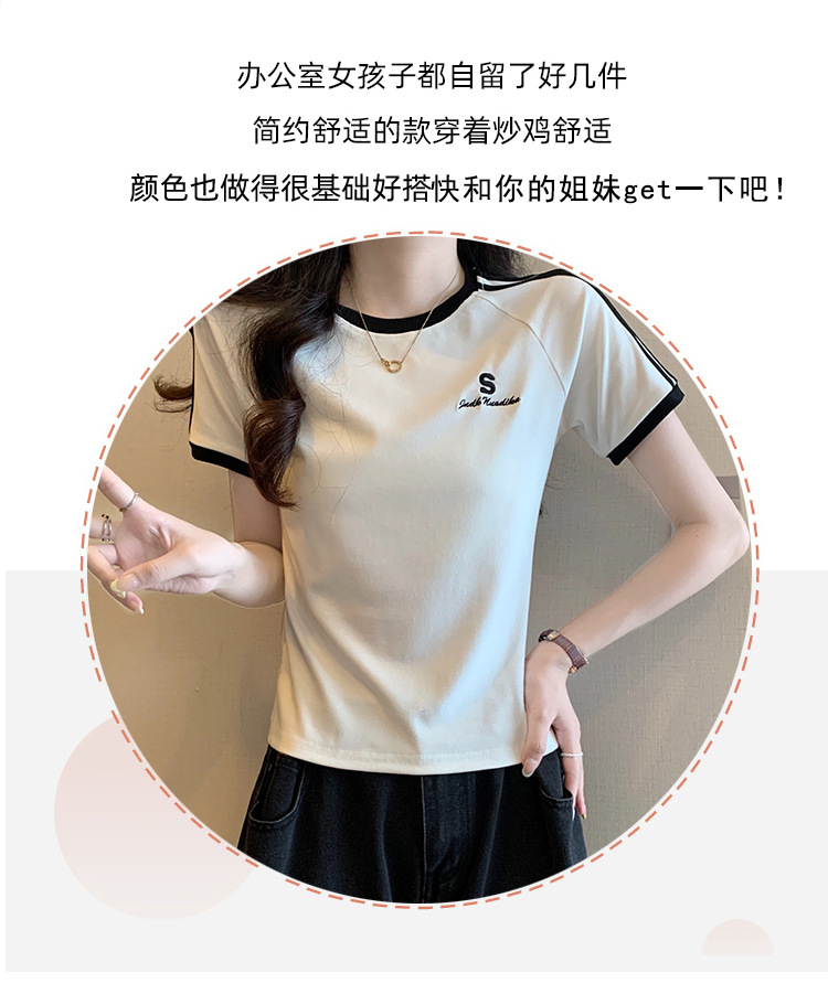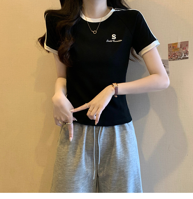 American shoulder-length round-neck short-sleeved T-shirt women's 2024 summer new style, a slimming and figure-hugging short T-shirt top for hot girls