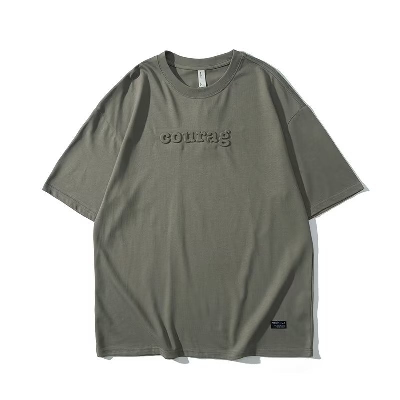 American-style casual three-dimensional printed short-sleeved T-shirt for men, summer loose pure cotton versatile round-neck half-sleeve pullover