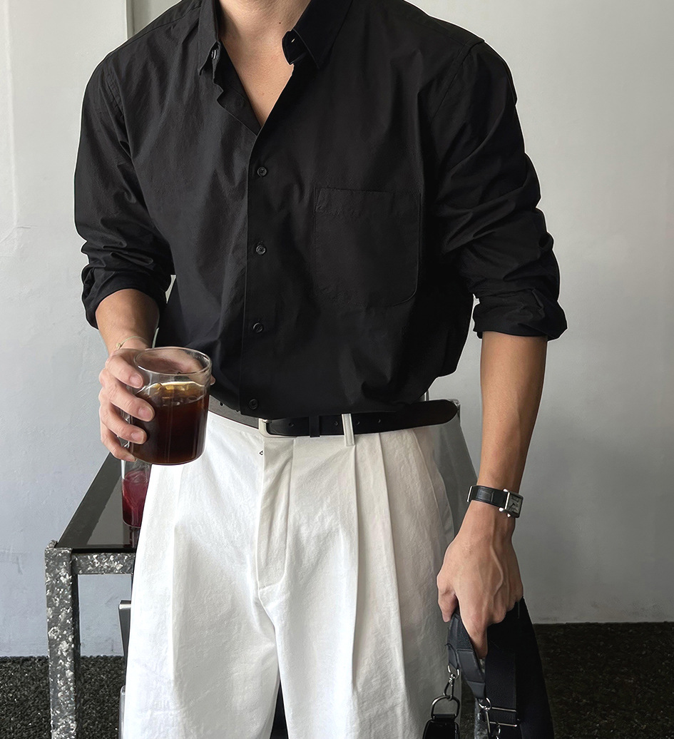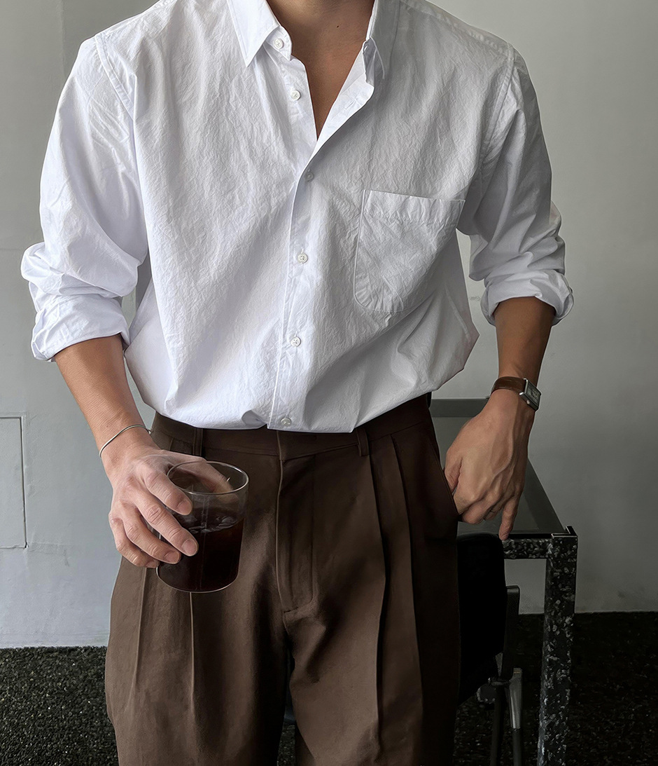 American vintage cotton and linen shirt for men, European brand loose, sun-protective long-sleeved, pleated and textured linen workwear shirt