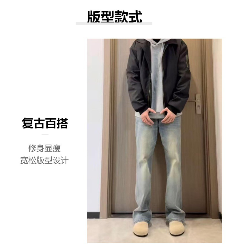 American washed, slightly flared men's loose fashion brand releases a new spring collection of retro curved semi-elastic casual jeans