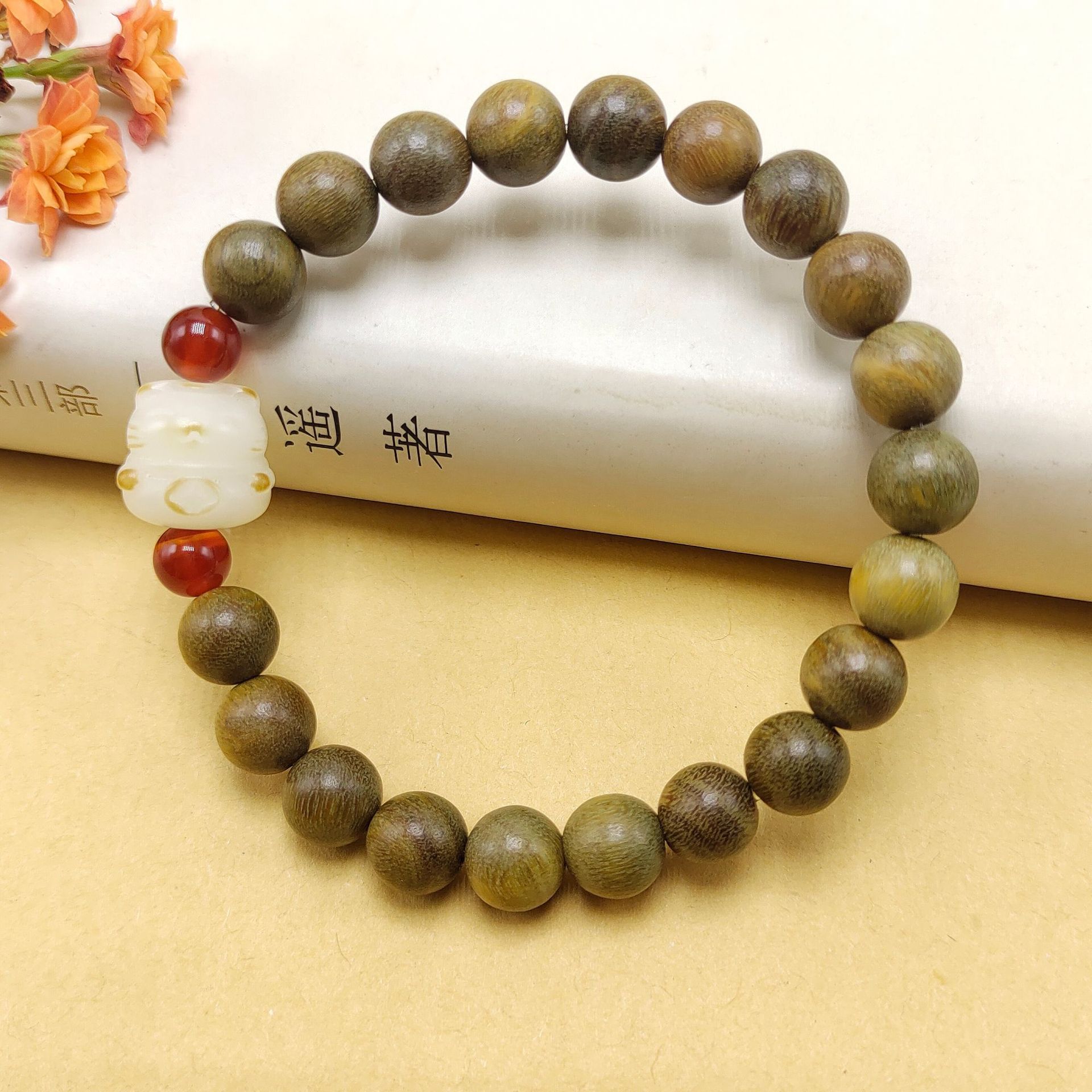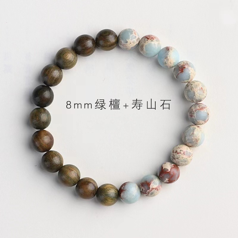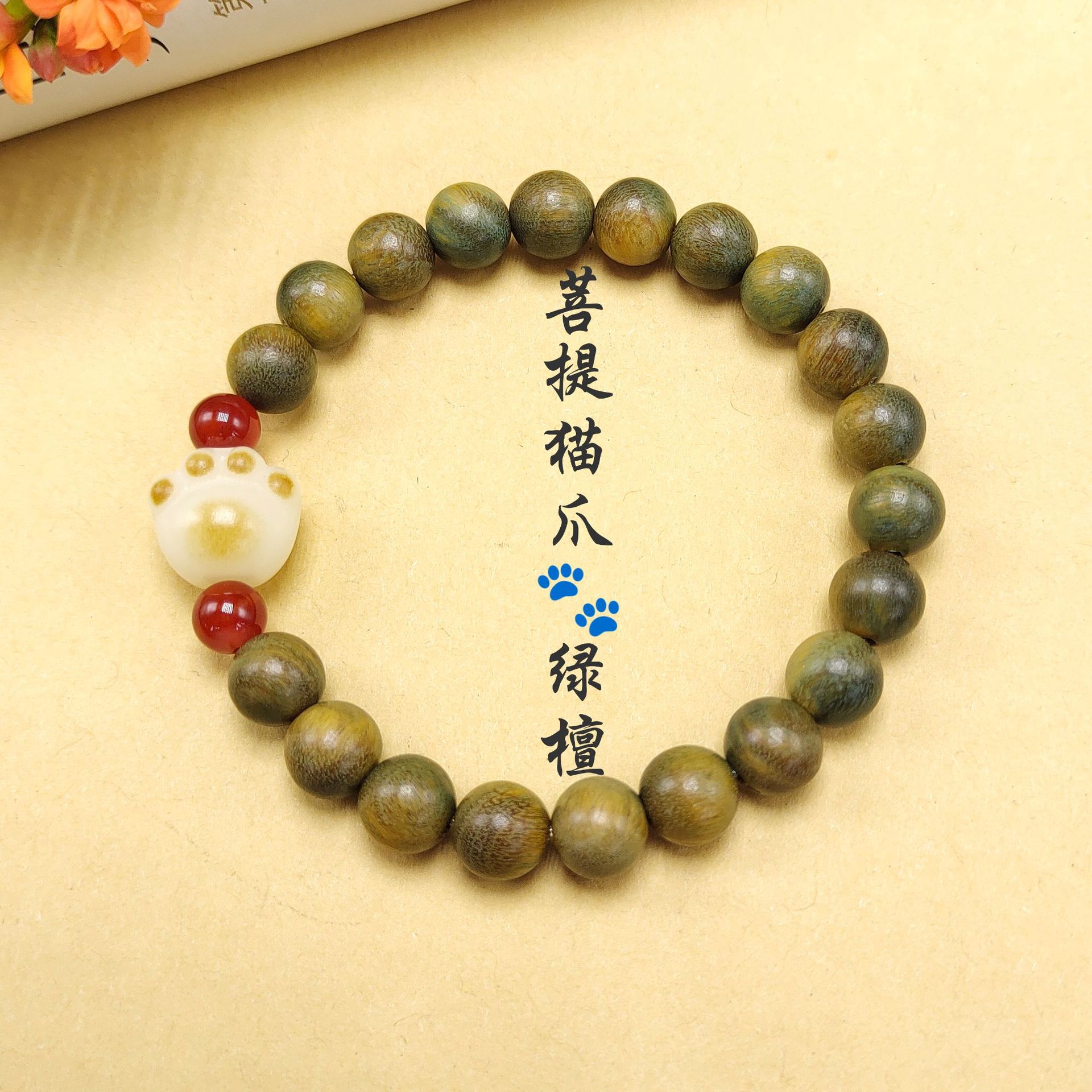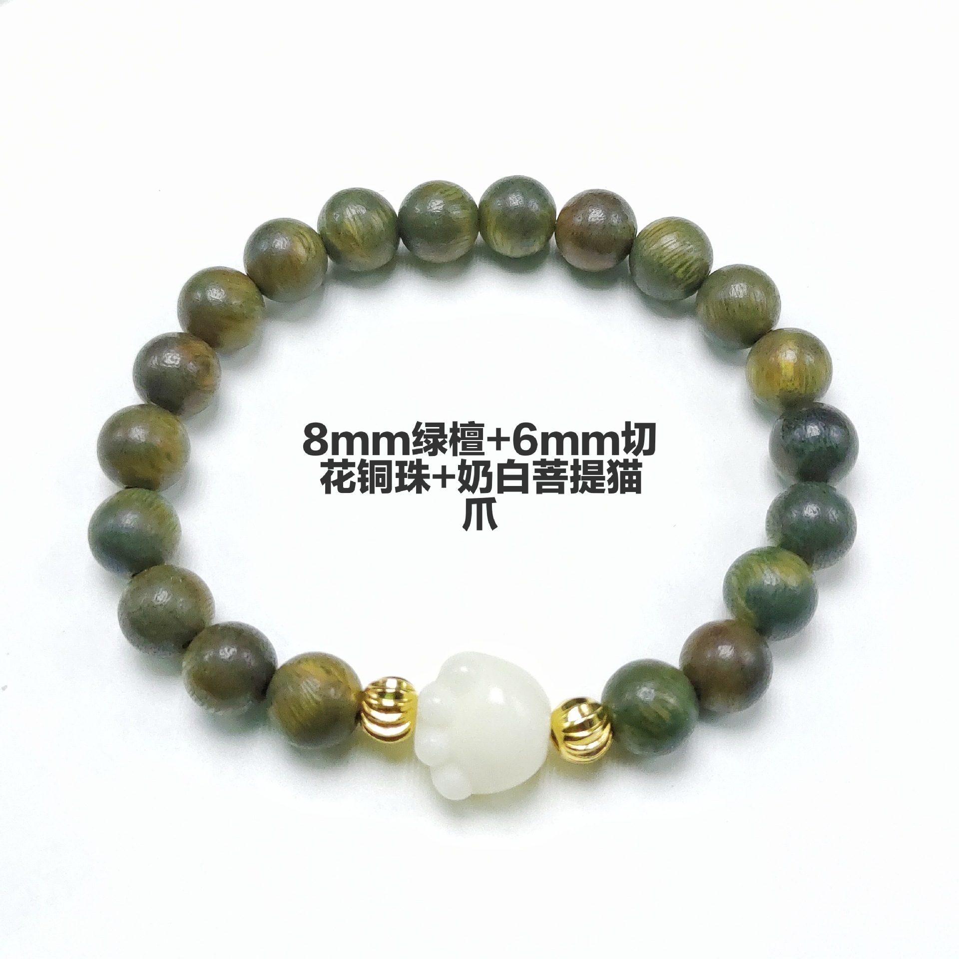 Ancient-style green sandalwood bracelet, single-loop weathered green cat paw female wooden sandalwood cultural play Buddhist prayer beads multi-treasure bracelet