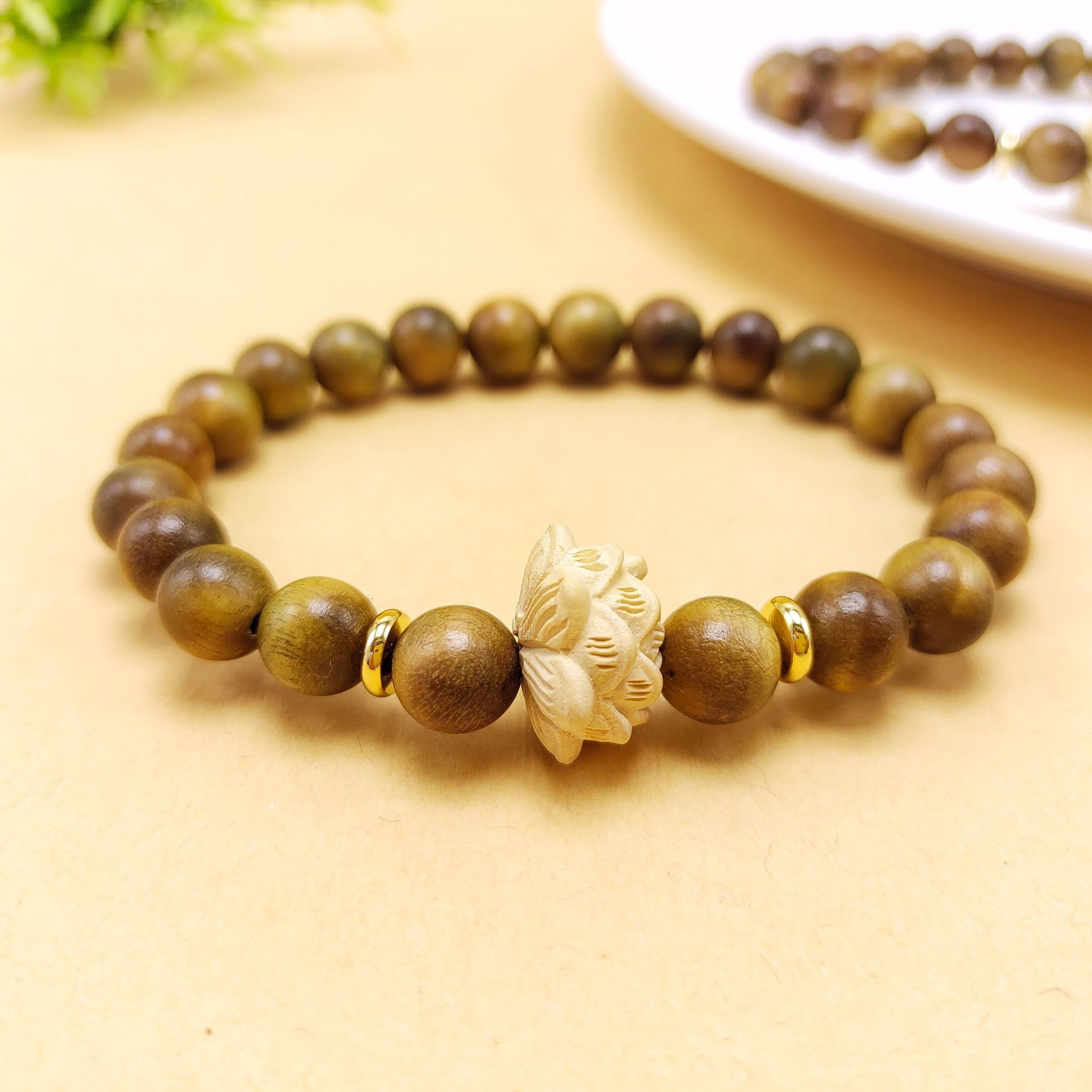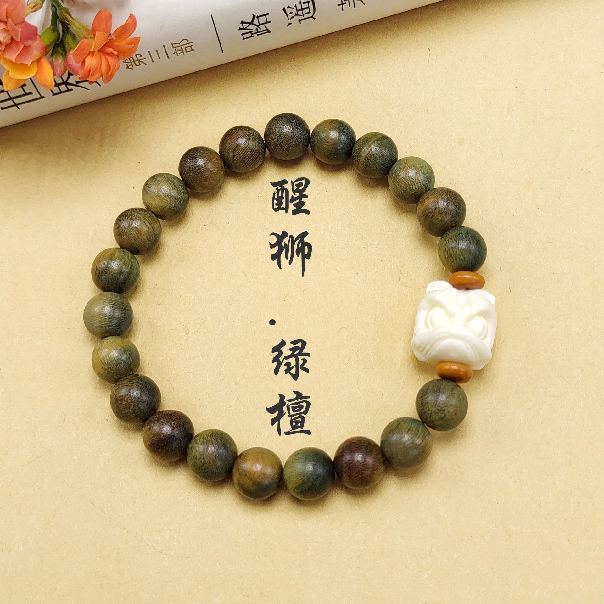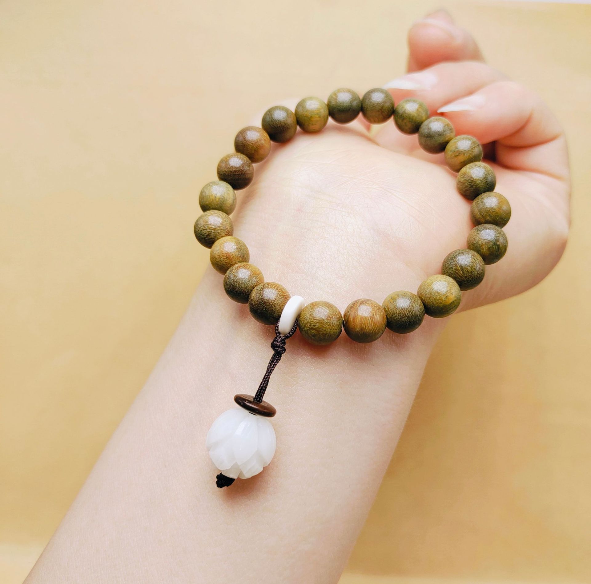 Ancient-style green sandalwood bracelet, single-loop weathered green cat paw female wooden sandalwood cultural play Buddhist prayer beads multi-treasure bracelet