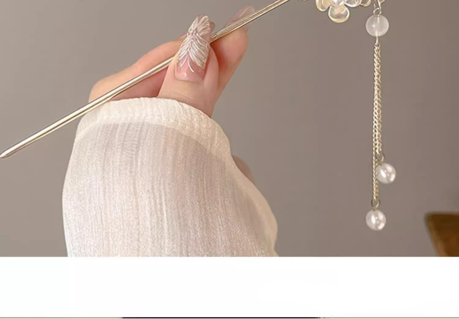 Upgraded 13# white flower tassel hairpin