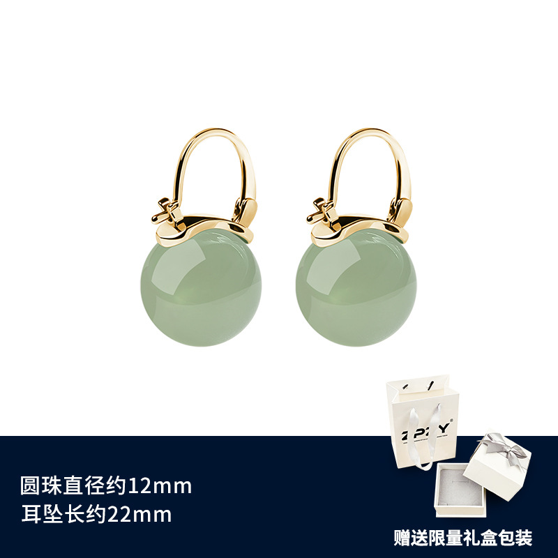 Ancient-style Hetian jade pure silver earrings, a new bestseller in 2025, with a high-end feel. Ice-type jade esoteric earrings for women