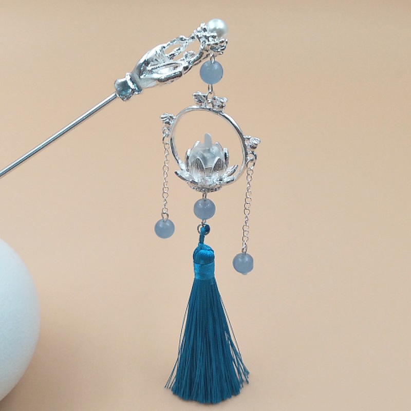 Buddha's hand in silver and lotus lamp in blue