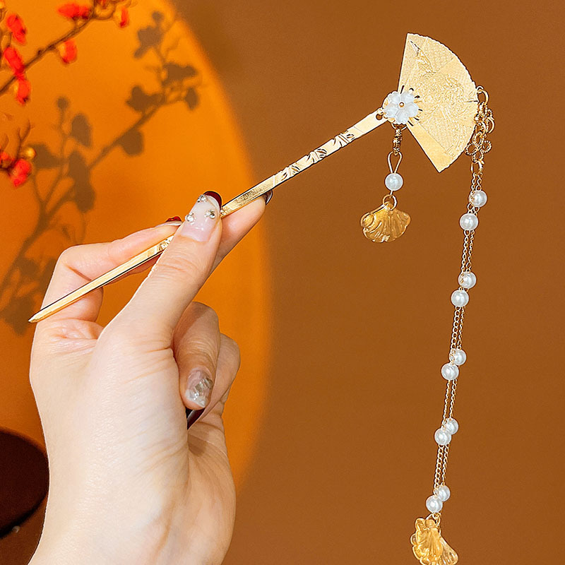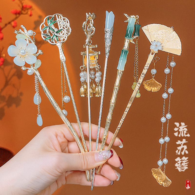 Ancient-style tassel hairpins for women, new Chinese-style ancient style, high-end feel, back of the head coiled hair hairpins, Hanfu cheongsam hairpins and headwear