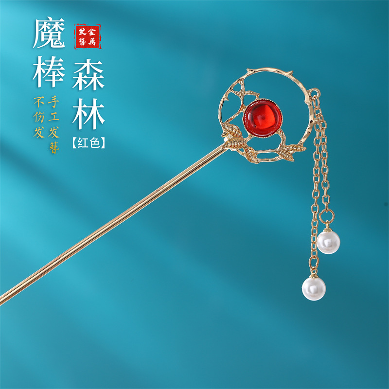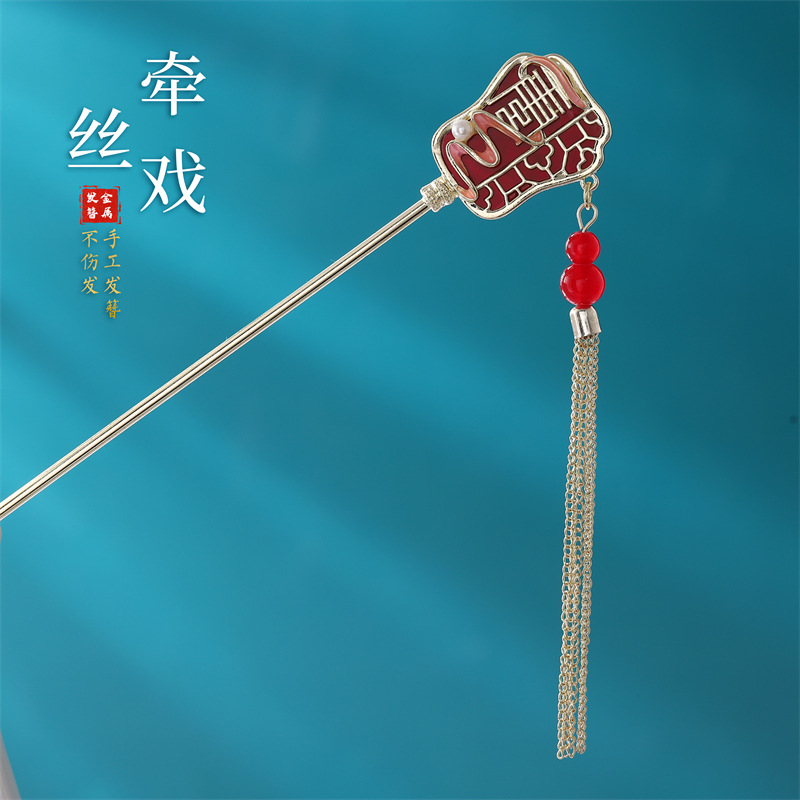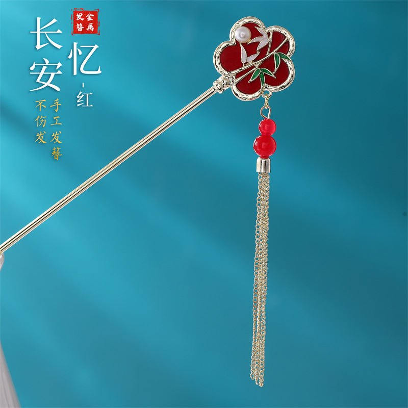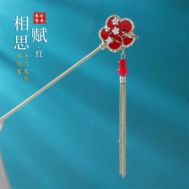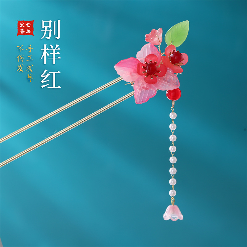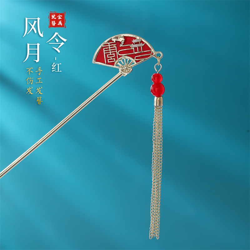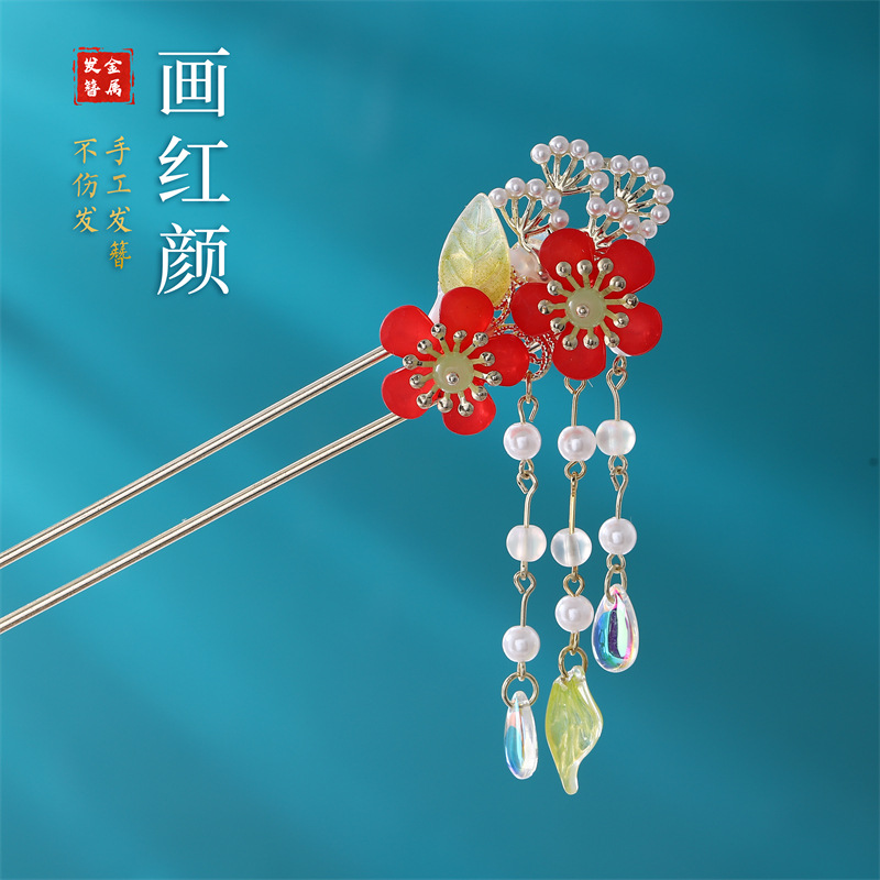 Three-piece set [Unusual Red + Peach Blossom Fan - Short Tassels + Painted Beauty]
