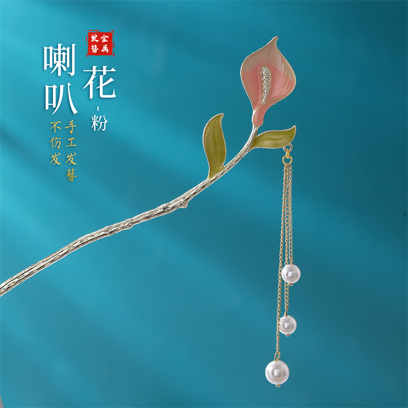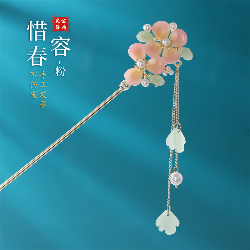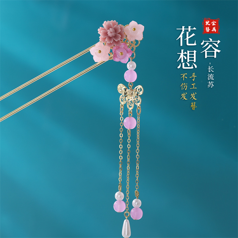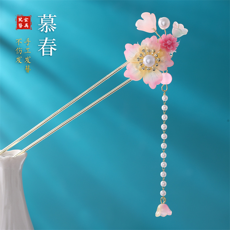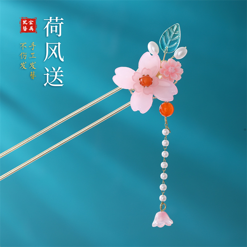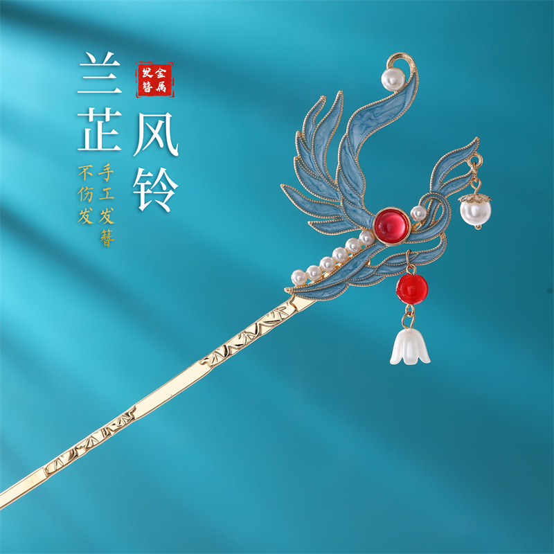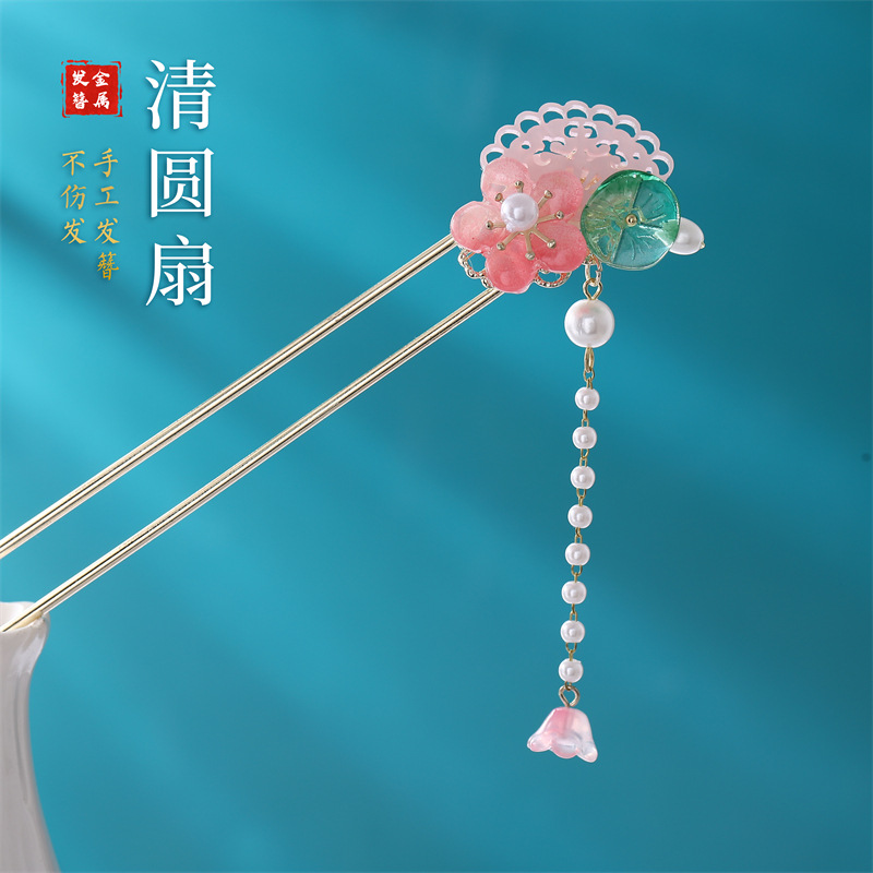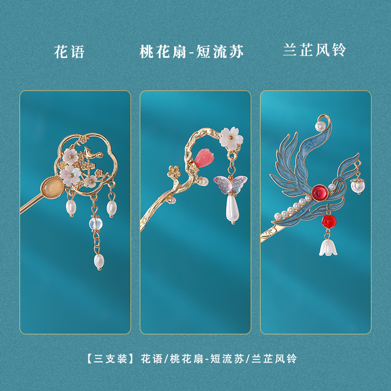 Three-piece set [Flower Language + Peach Blossom Fan - Short Tassel + Orchid Chime Wind Chime