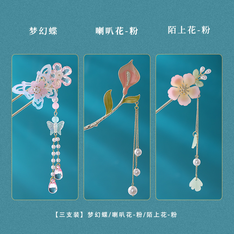 Three-piece set [Dreamy Butterfly + Morning Glory - Pink + Moshanghua - Pink]