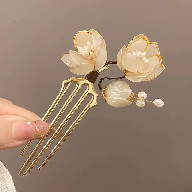 Ancient-style white magnolia hairpin, flower hairpin, women's classical cheongsam, new Chinese-style high-end hairpin, Hanfu headwear