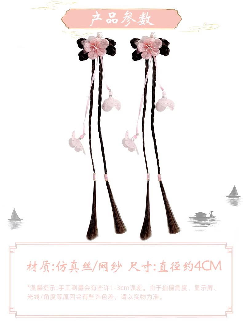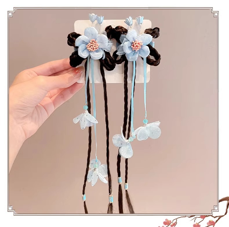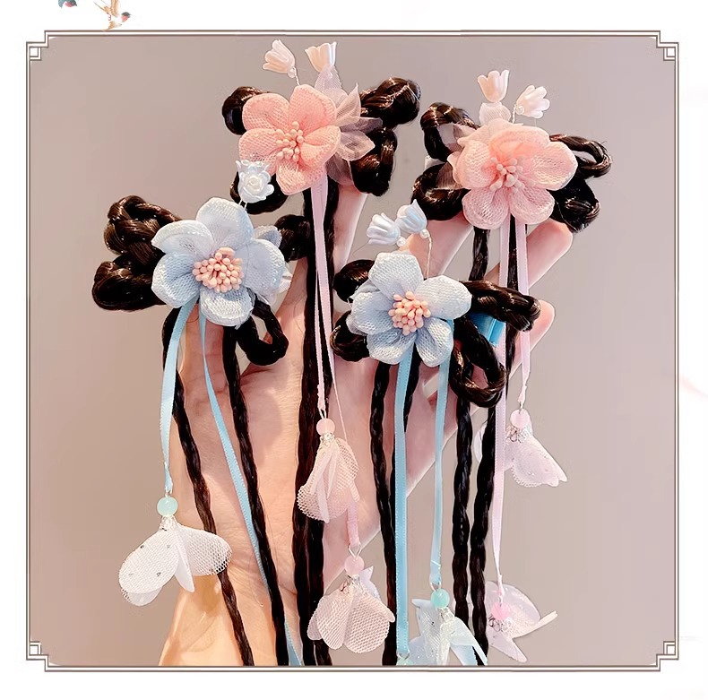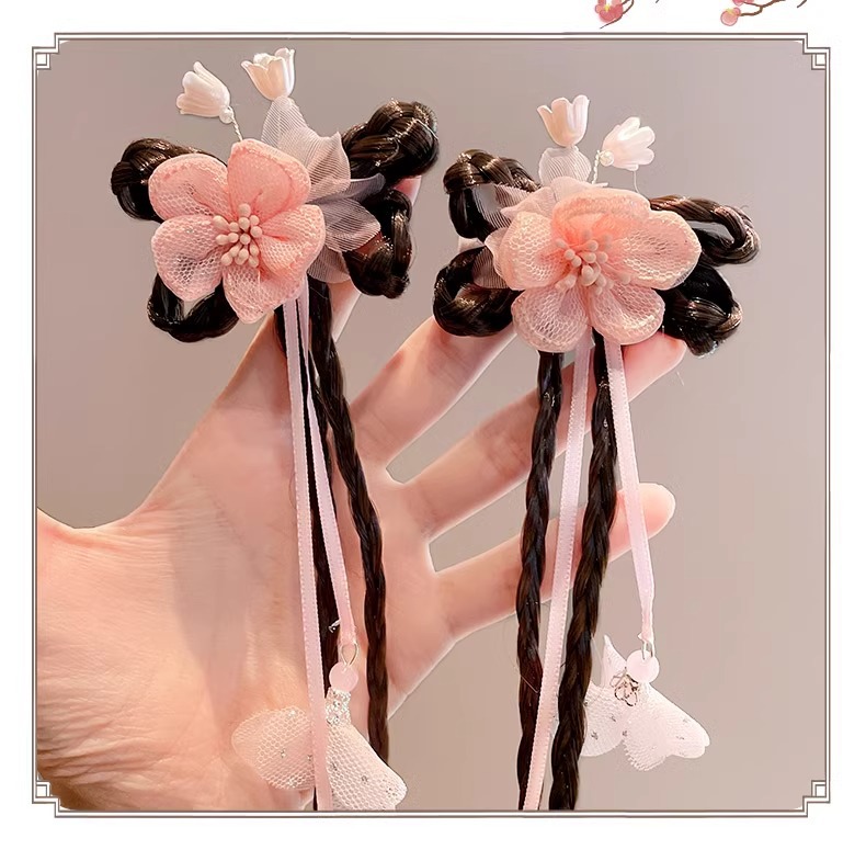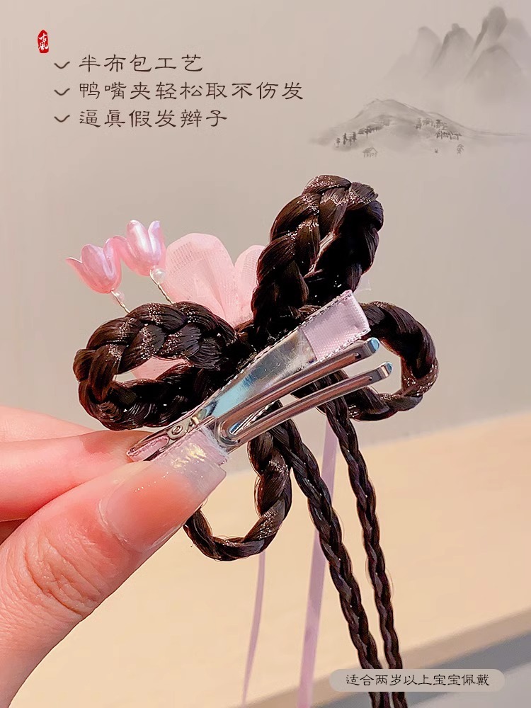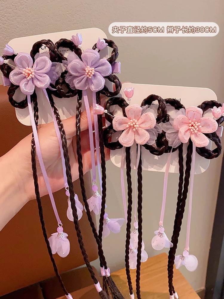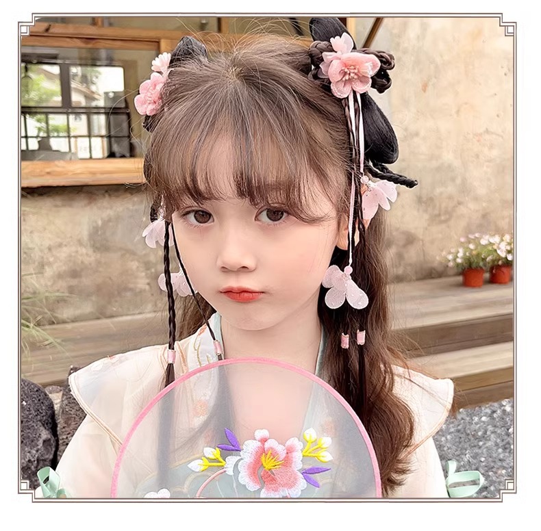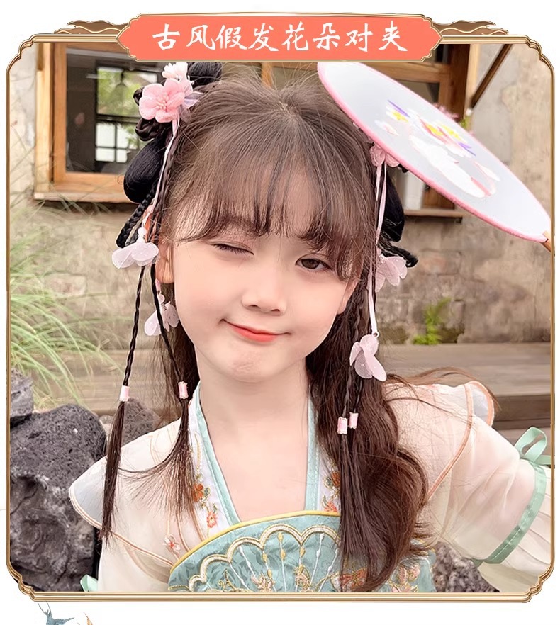 Ancient-style wigs, braids, hair accessories, cute flower hair clips for little girls, children's Hanfu headwear, Chinese-style hair clips for girls