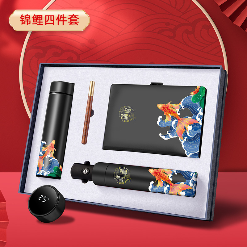 Red koi temperature-controlled cup +A5 koi book + wood grain pen + automatic umbrella +32G window flower USB flash drive