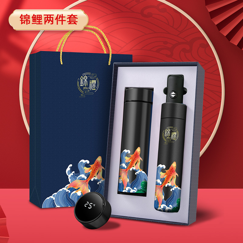 Red koi temperature-controlled cup + Automatic umbrella [Gift Box and Gift Bag Style]