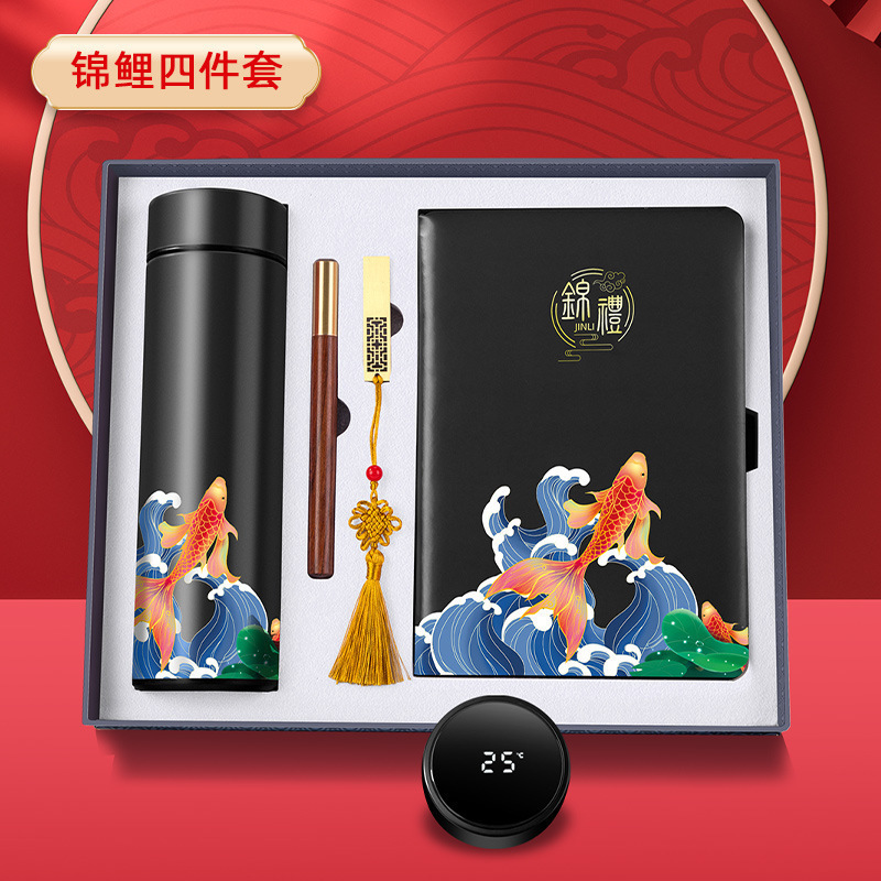 Red koi temperature-controlled cup +A5 koi book + wood grain pen +32G window flower USB flash drive