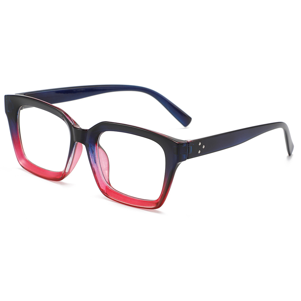 Anti-blue light square frame flat light glasses for women, contrasting color rice studs, simple and slender appearance, high level of spectacle frame, European and American trendy spectacle frame
