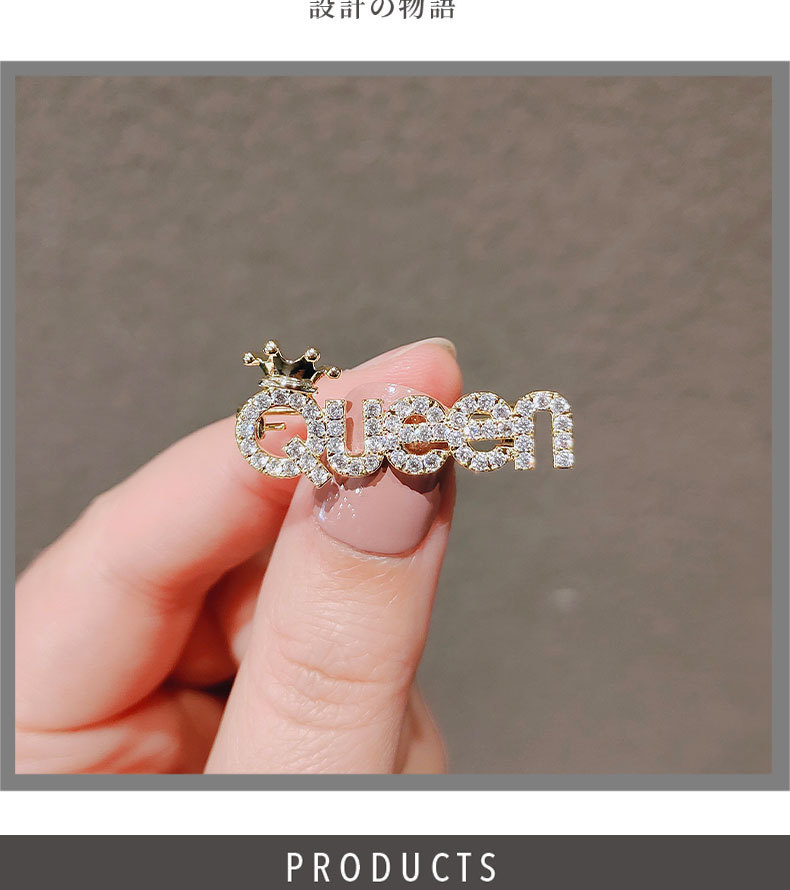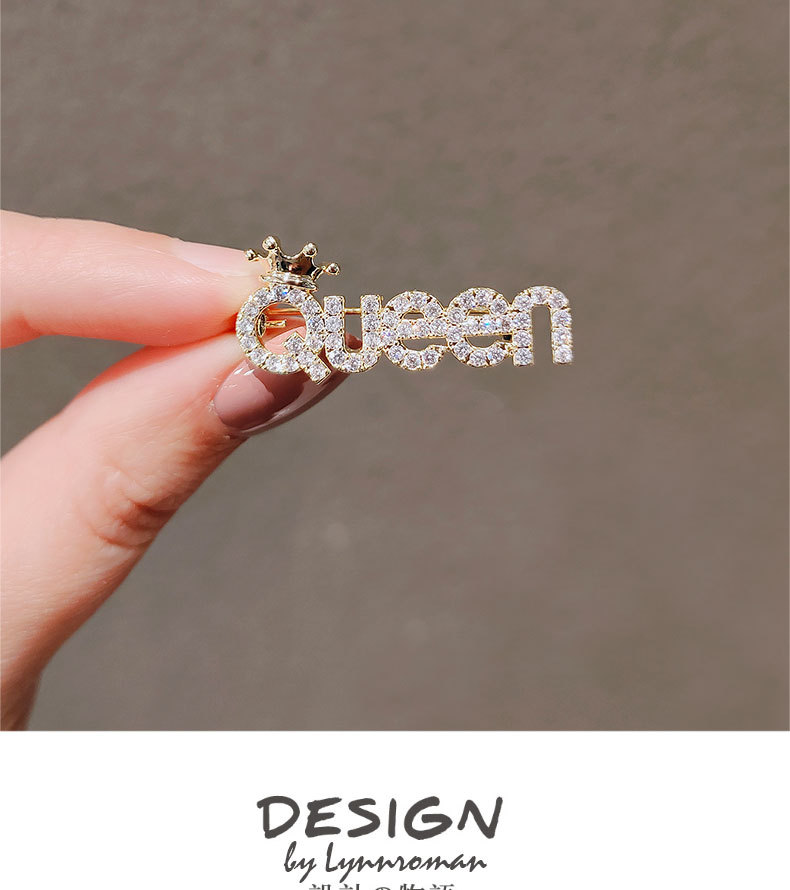 Anti-glare brooch, letter QUEEN brooch, women's trendy personality pin, collar pin, anti-glare clasp, 100 matching accessories wholesale