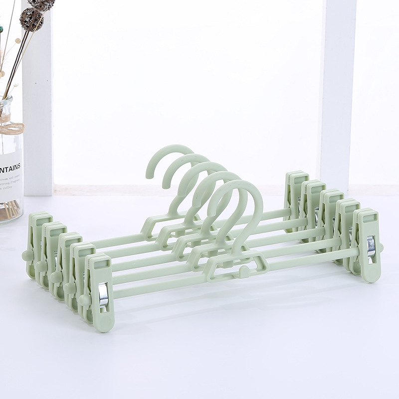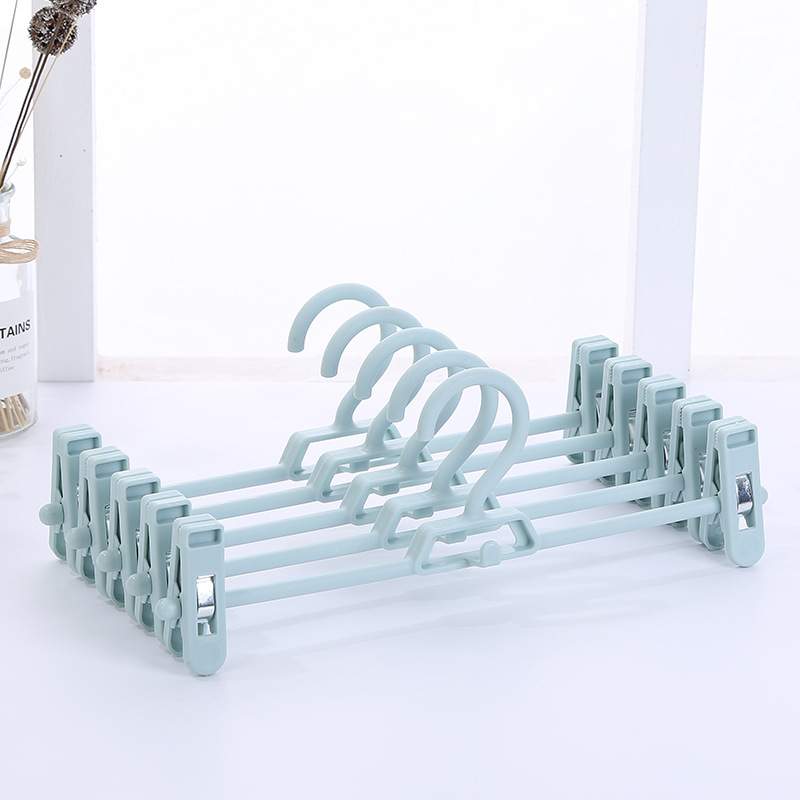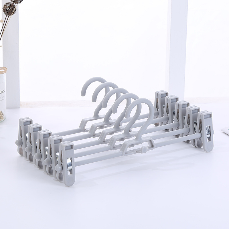 Anti-slip telescopic plastic trouser rack for storage, multi-functional adult trouser clips, Nordic color home seamless trouser rack factory direct sales