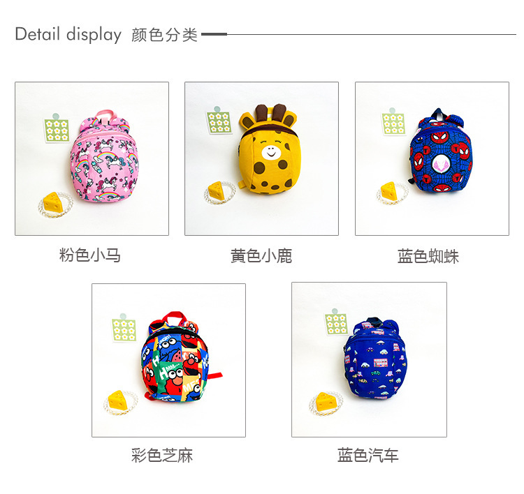 Anti-wandering backpacks for infants and toddlers aged 1-3, cartoon cute baby small schoolbags, children's kindergarten backpacks wholesale