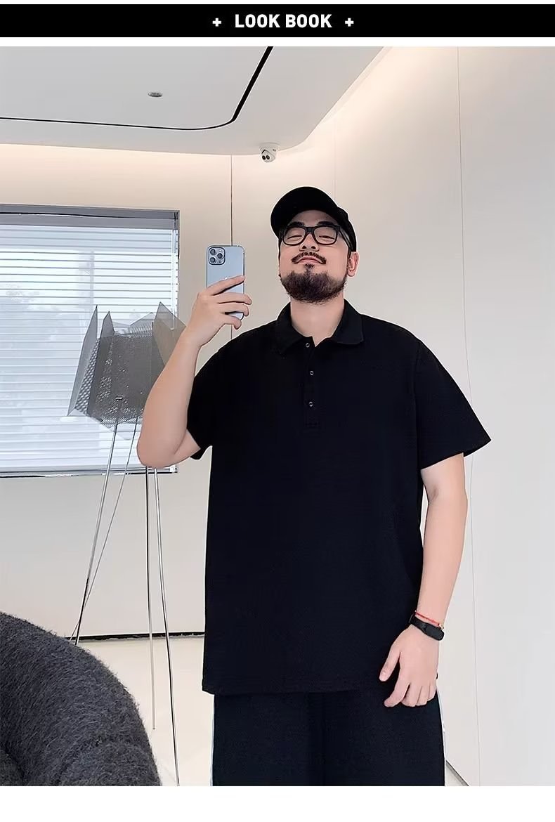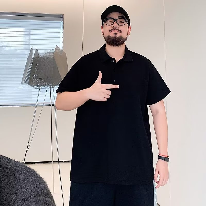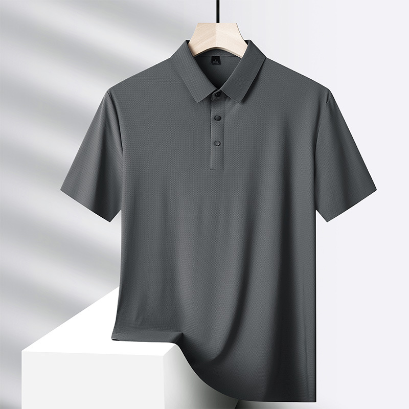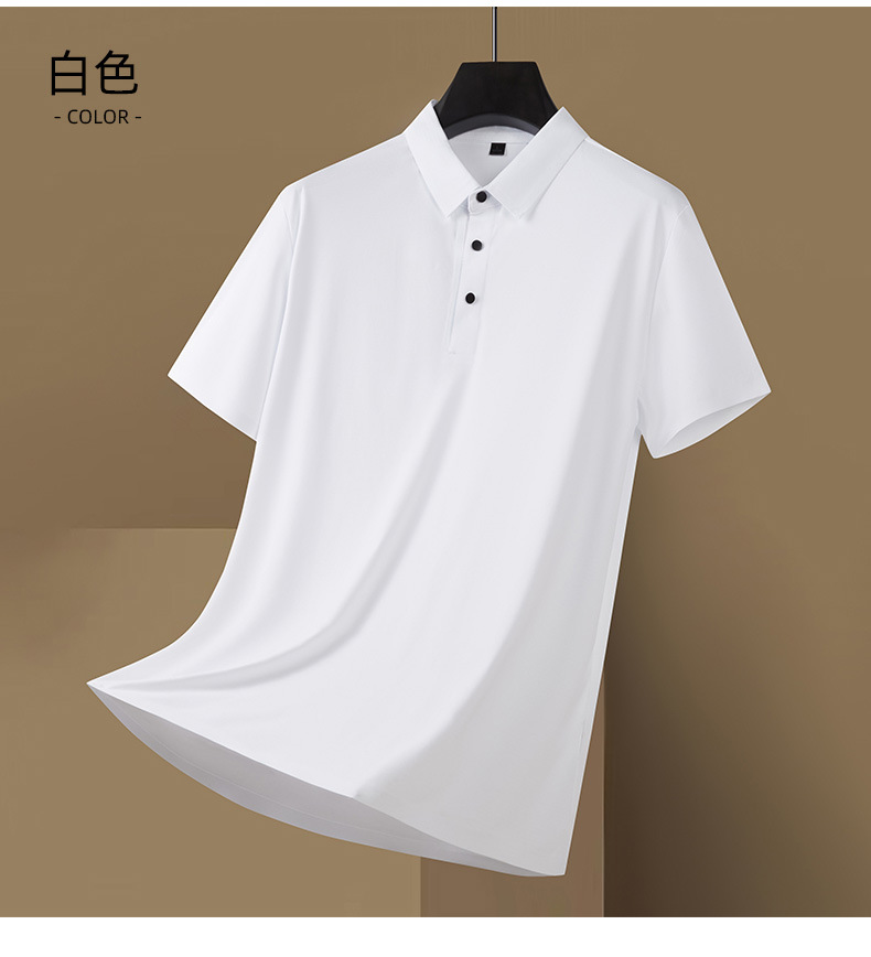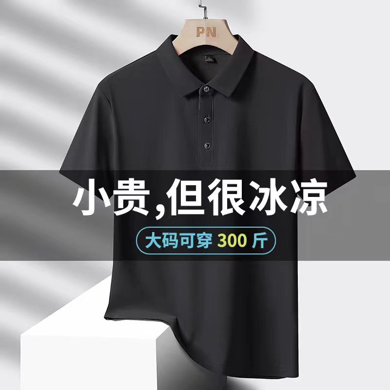 Anti-wrinkle men's lapel cool short-sleeved business POLO shirt, summer quick-drying plus-size loose half-sleeved top for fat people
